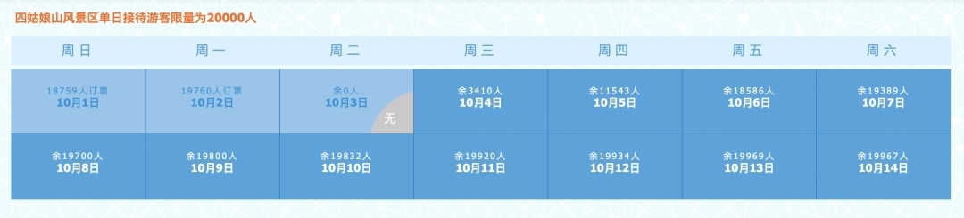 据阿坝旅游网,四姑娘山景区单日接待游客限量为20000人,10月3日门票已售罄。