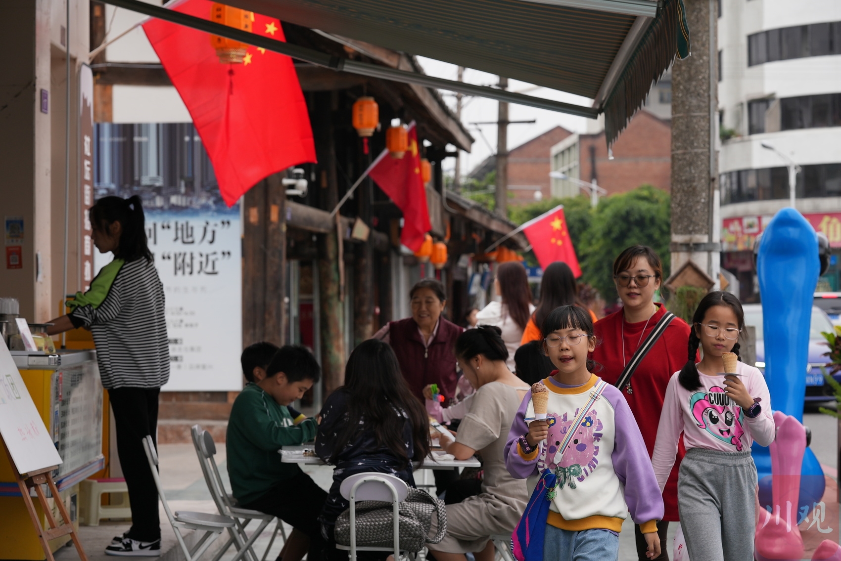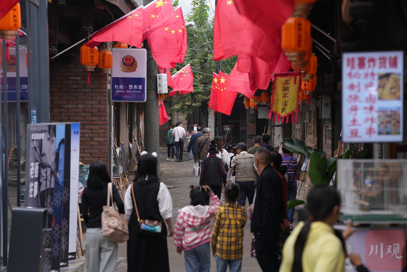 中秋国庆“双节”长假期间不少游客来到了乐山市夹江县。四川在线记者看到,在今年端午前夕完成老街焕新的社坛街,展览、书店、咖啡馆、文创周边等各种时尚元素为这里注入了新的活力,吸引了许多年轻人前来拍照打卡。