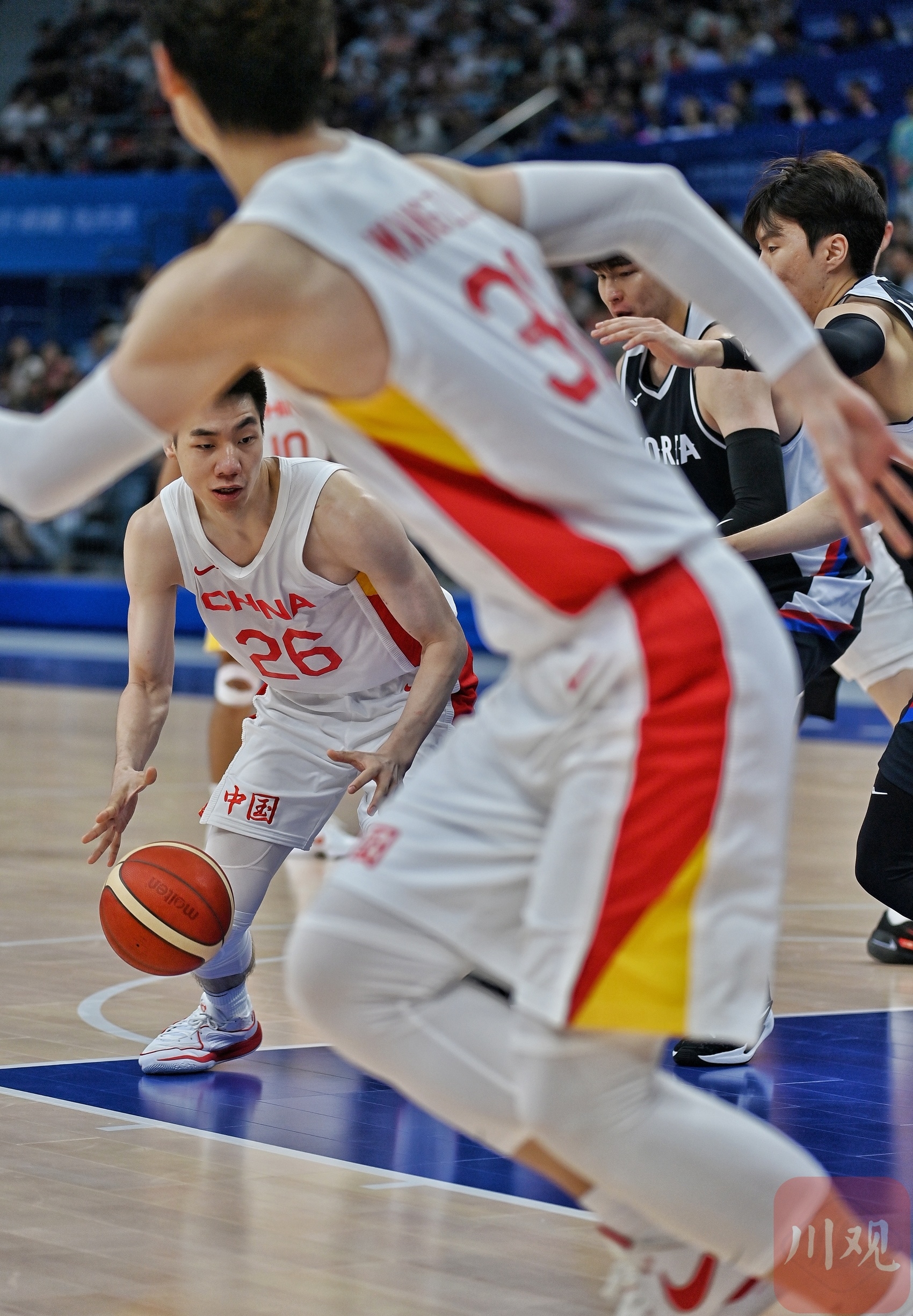 中国队员带球突破。