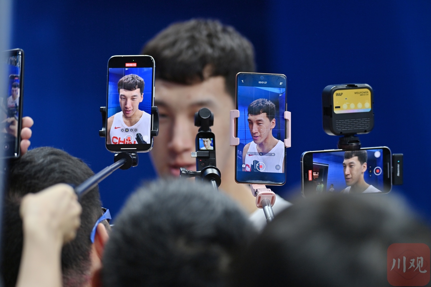赛后,中国队员接受采访。