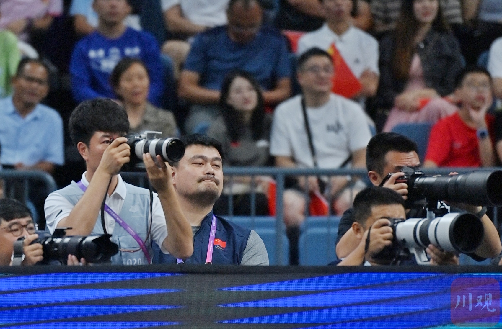 姚明在现场关注中国队比赛。