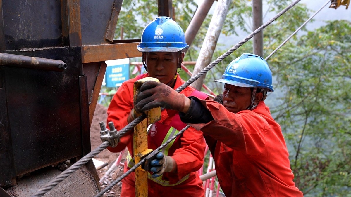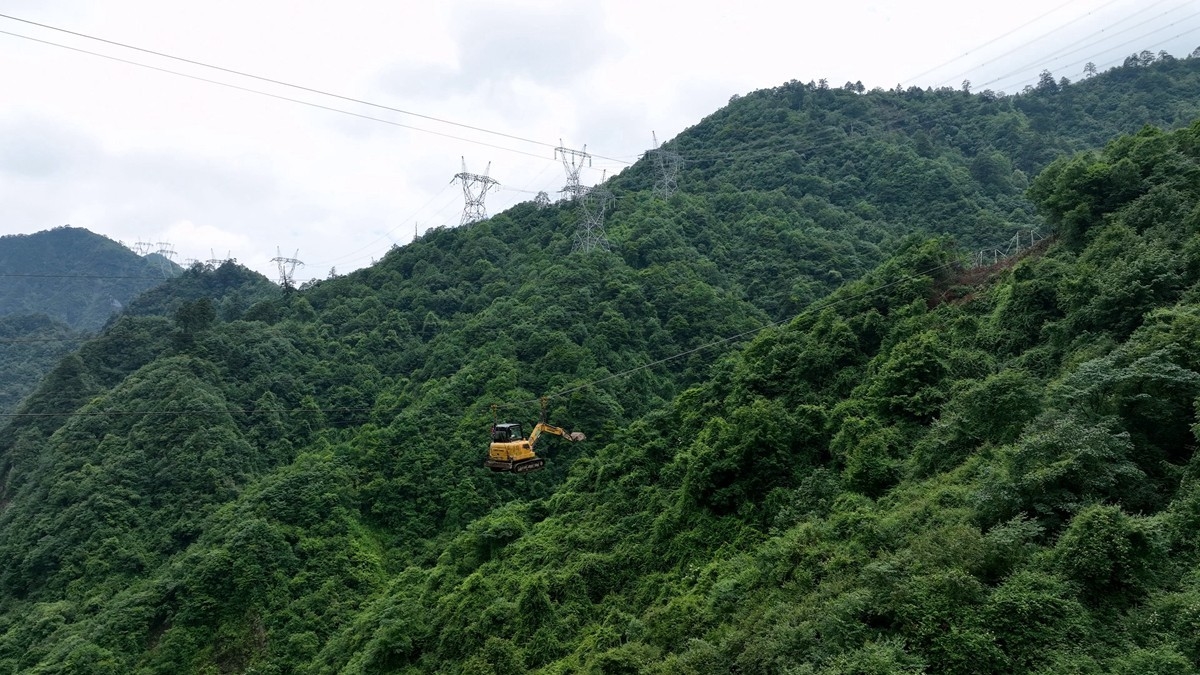 国庆节前夕,项目部通过重型货运索道运输小型挖掘机。尤琅 摄