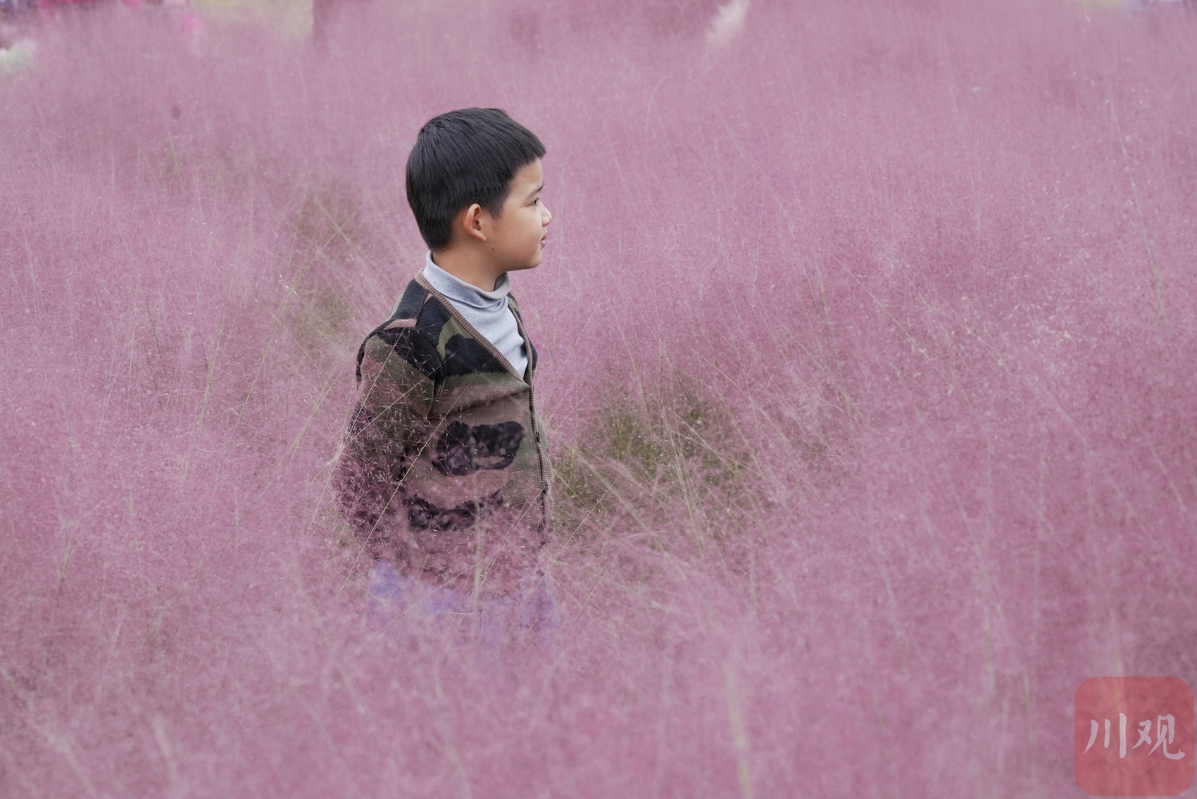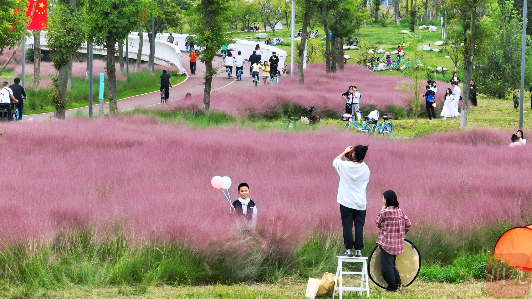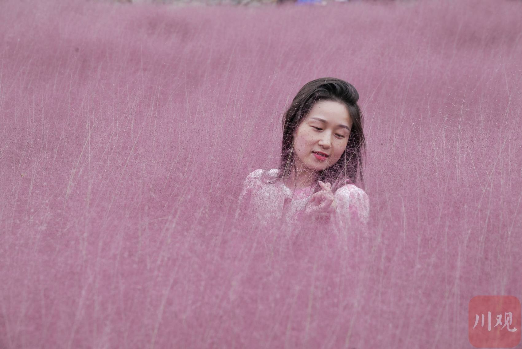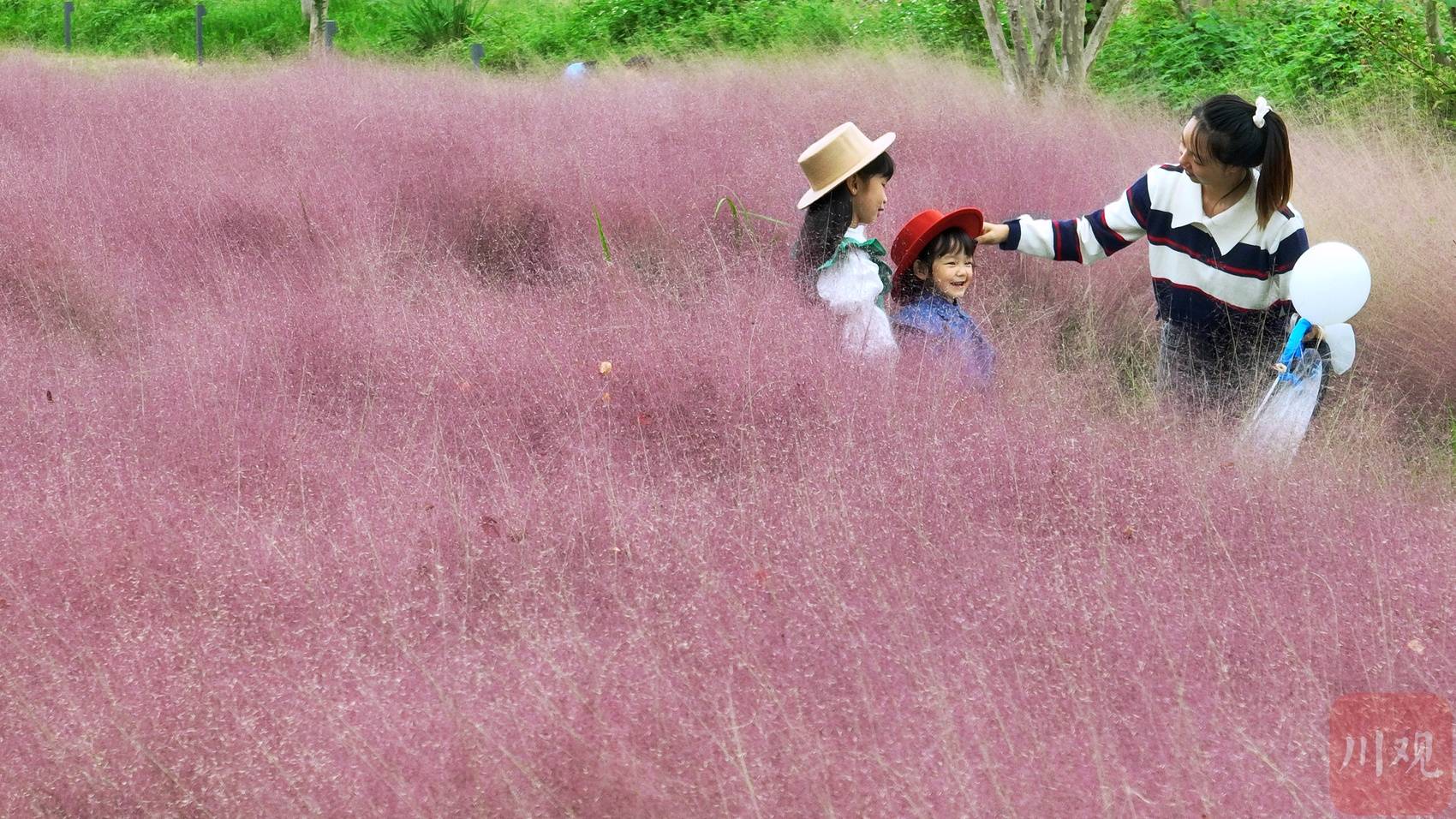龙泉驿区的玉石湿地公园内,粉黛乱子草正在盛开,一片片“粉色云雾”组成的海洋,很是壮观