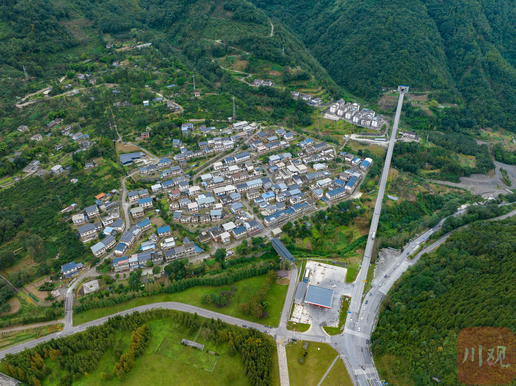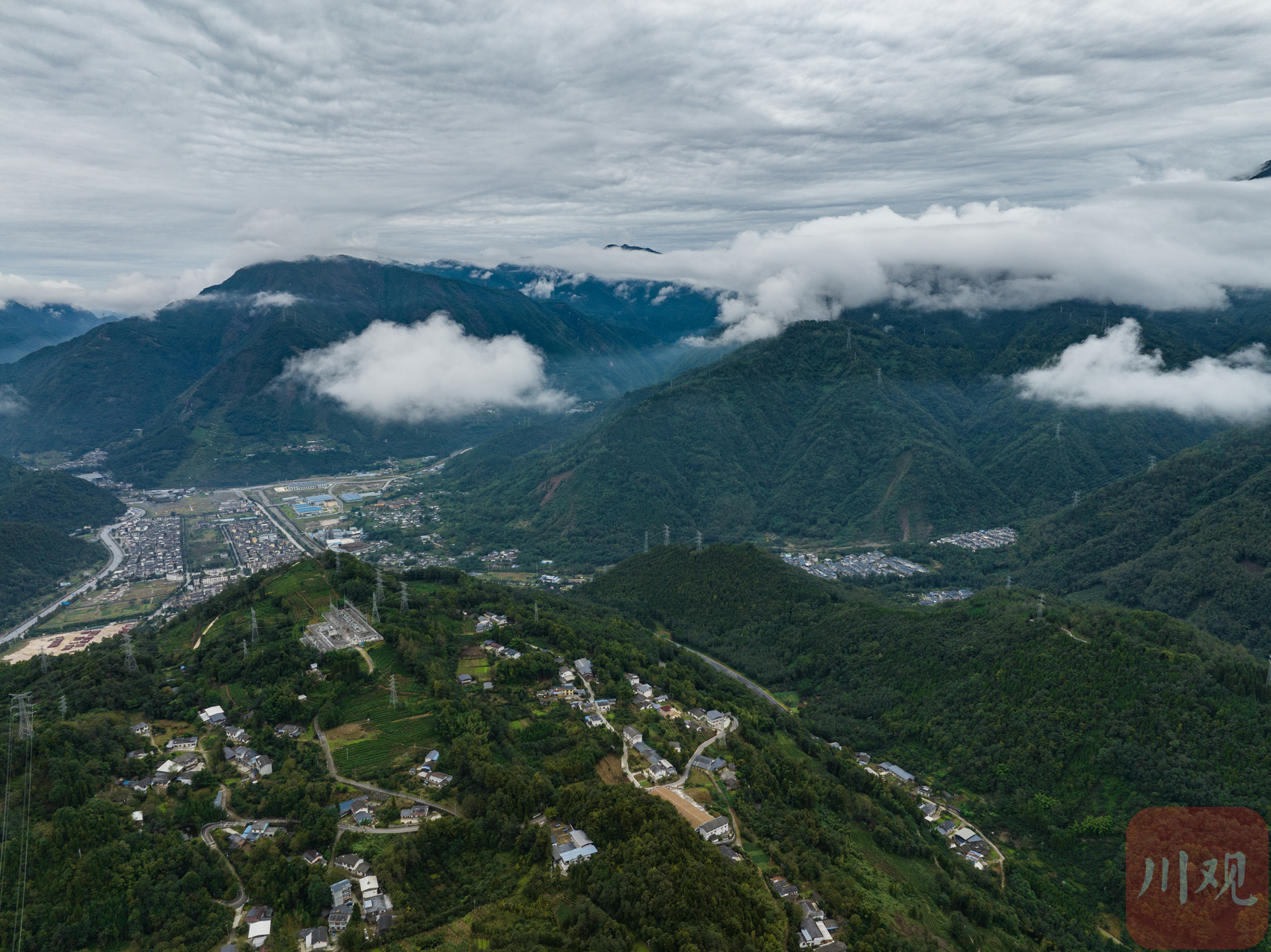 10月4日,绵阳市北川县曲山镇石椅羌寨游客如织,人们来此品羌家美食,赏羌族风情,欢度国庆佳节。四周山峦起伏,云雾缥缈,密布若干羌寨,湔江从山峦之间逶迤穿行,在此形成一个“U”形回湾,俯瞰山川壮丽,美若画卷。