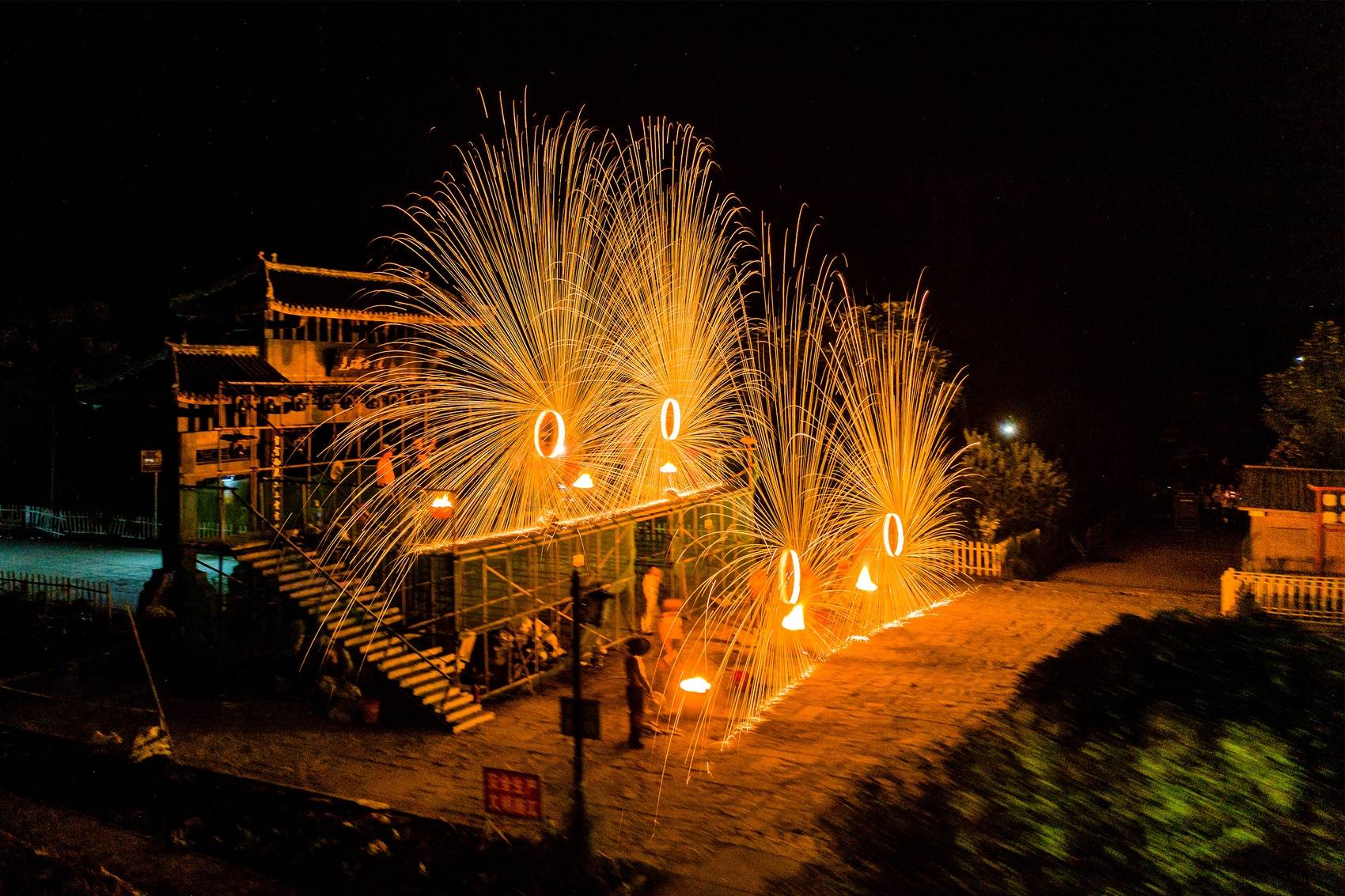 9月29日起,首届九州非遗绝技文化旅游节在泸州市合江县4A级景区尧坝古镇启幕,备受当地市民和游客热捧。开园首日,便迎来游客近1.5万人次。连日来,景区内4个舞台,每天43场特色非遗绝技演出节目更是场场火爆,特别是每当夜晚来临后上演的大型光影铁花秀《华夏铁魂》更是让很多游客直呼“过瘾”。