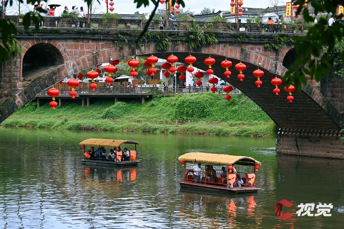 10月3日,游客们在眉山市洪雅县柳江古镇游玩。 C视觉摄影师 郑凯 摄