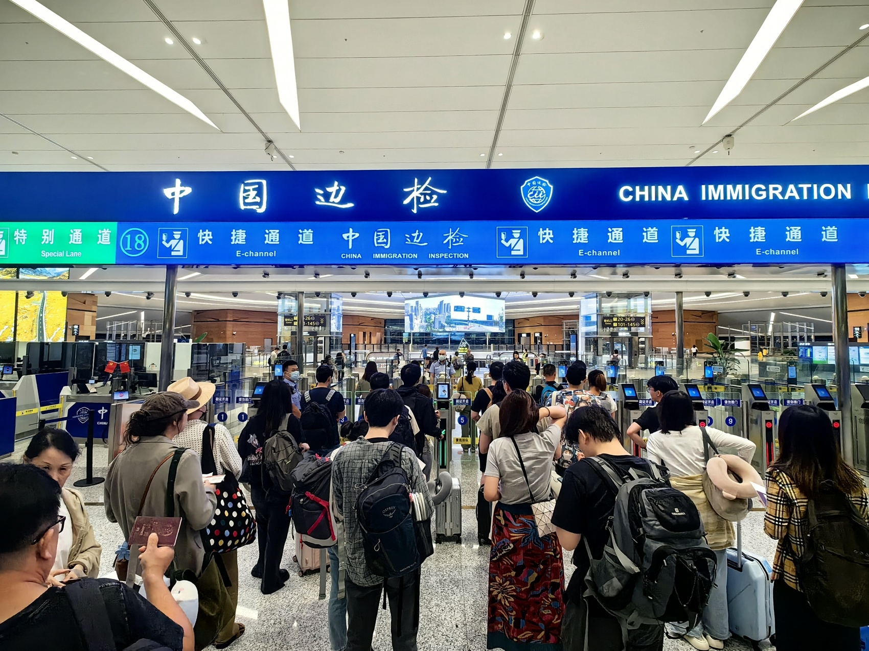 双节期间的成都出入境边防检查站。(图片由成都出入境边防检查站提供)