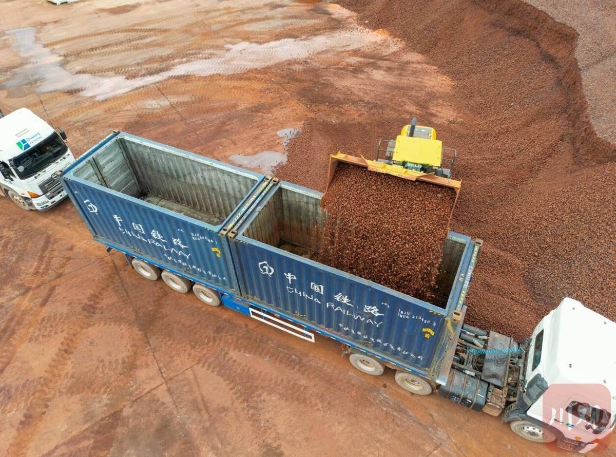 铁矿石正在装箱。