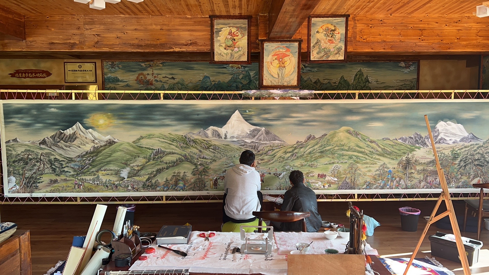 翁都的希望正在成为现实。刘洪透露,在《香巴拉画卷》之后,目前已经创作出近200幅“亚丁画派”风格的新唐卡作品,放在亚丁村非遗画廊销售,让中外游客在亚丁有可以带走的文旅商品,将亚丁之美和新派唐卡艺术传播到五湖四海。