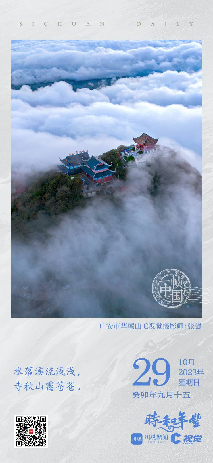 水落溪流浅浅,寺秋山霭苍苍。