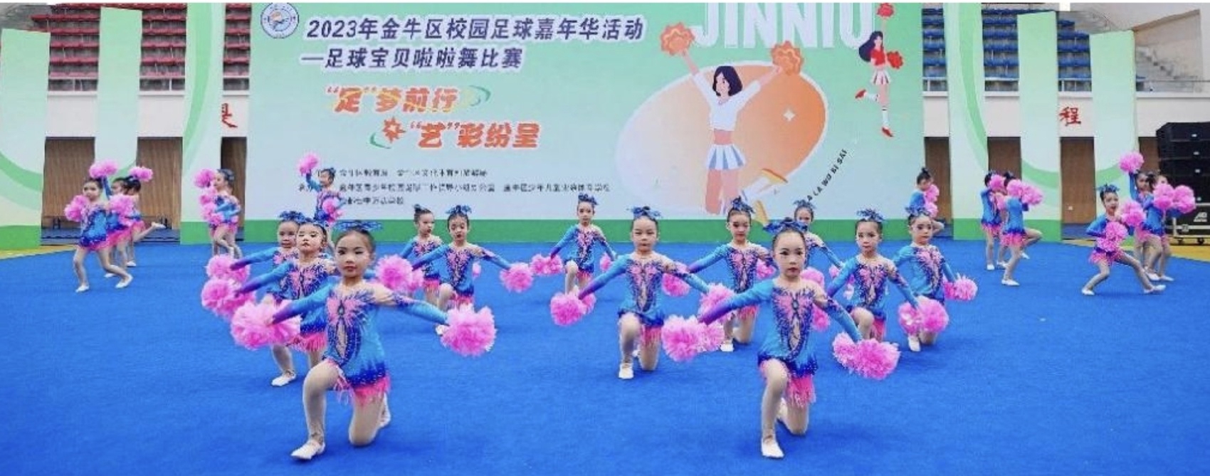 10月29日,记者从成都市体育局获悉,由成都市金牛区教育局、金牛区文化体育和旅游局主办的“足梦前行·艺彩纷呈”2023年金牛区校园足球嘉年华活动——足球宝贝啦啦舞比赛在成都七中万达体育馆落下帷幕,金牛区80余家中小学幼儿园近1600名运动员参与本次比赛。