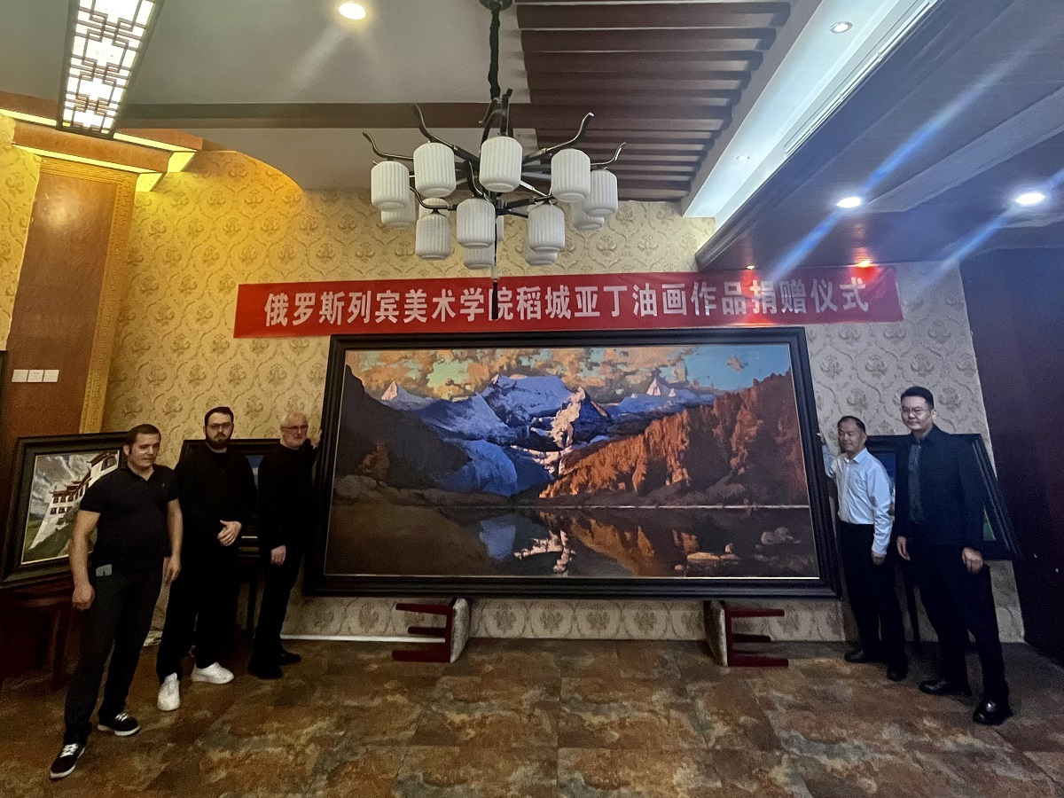 俄罗斯列宾美术学院稻城亚丁油画作品捐赠仪式现场。 余如波 摄