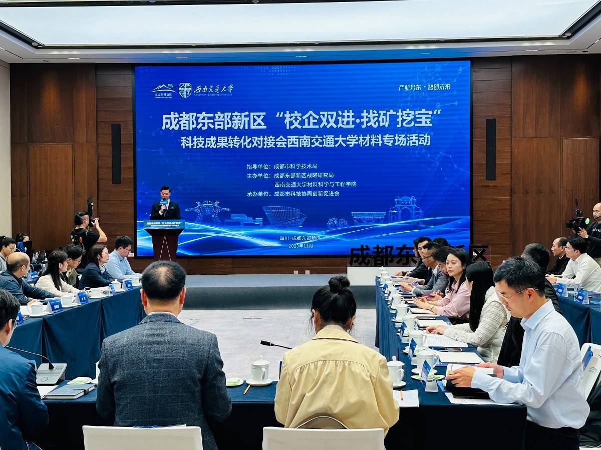 11月2日,“校企双进∙找矿挖宝”科技成果转化对接会西南交通大学材料专场活动在成都东部新区举行。活动上发布了成都东部新区首个支持科技创新的专项政策。