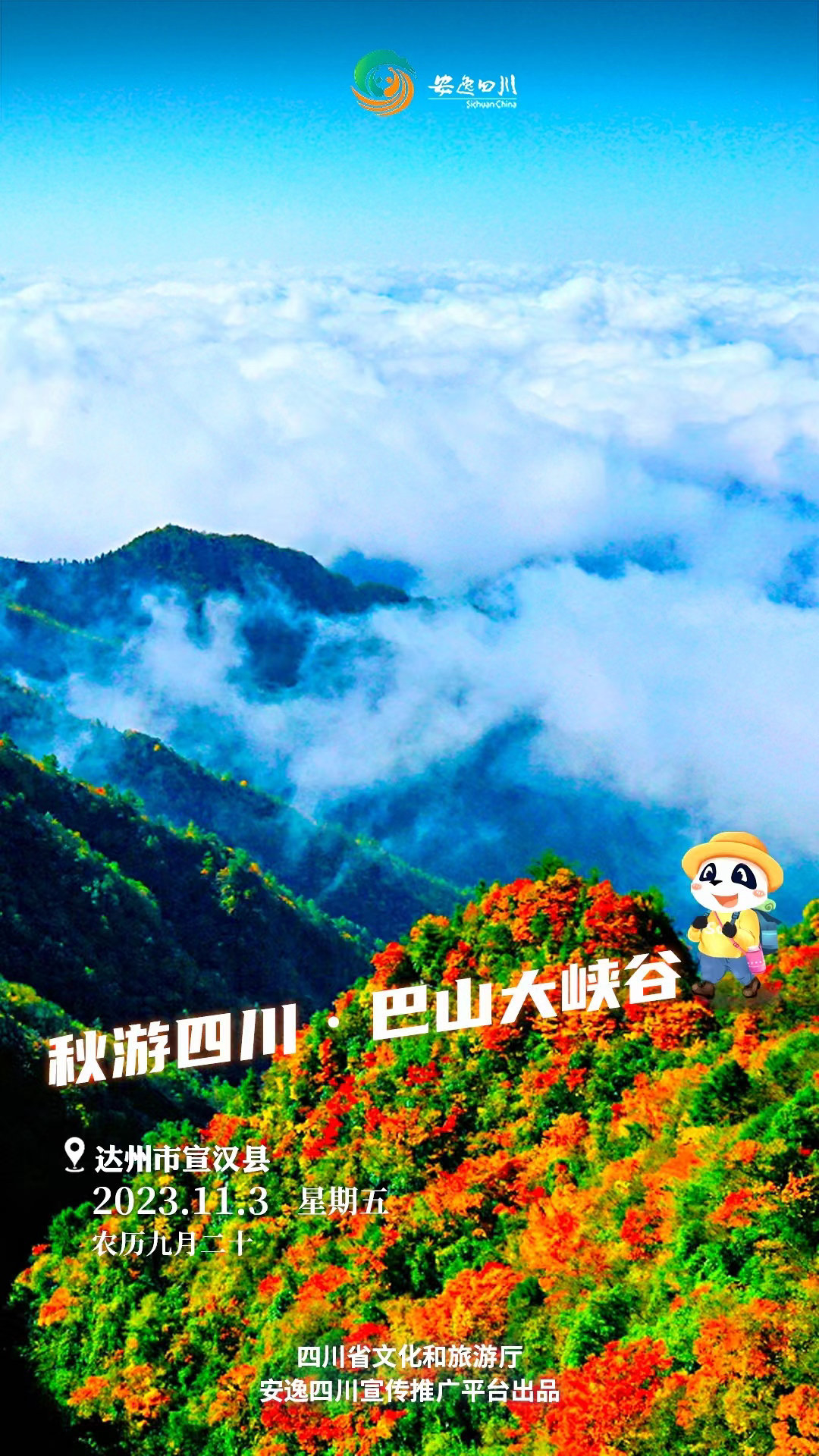 11月3日,星期五。今日安逸四川日历海报“秋游四川”之旅走进巴山大峡谷,看漫山缱绻的秋色。
