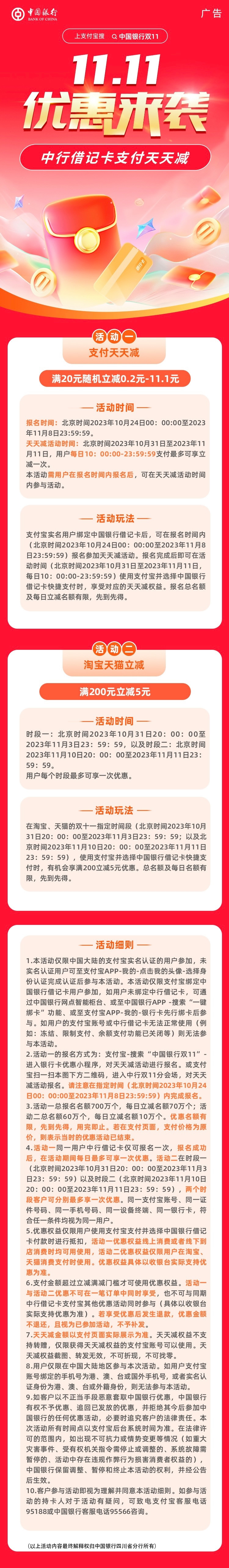 【福利】“11.11”优惠来袭 中行借记卡支付天天减