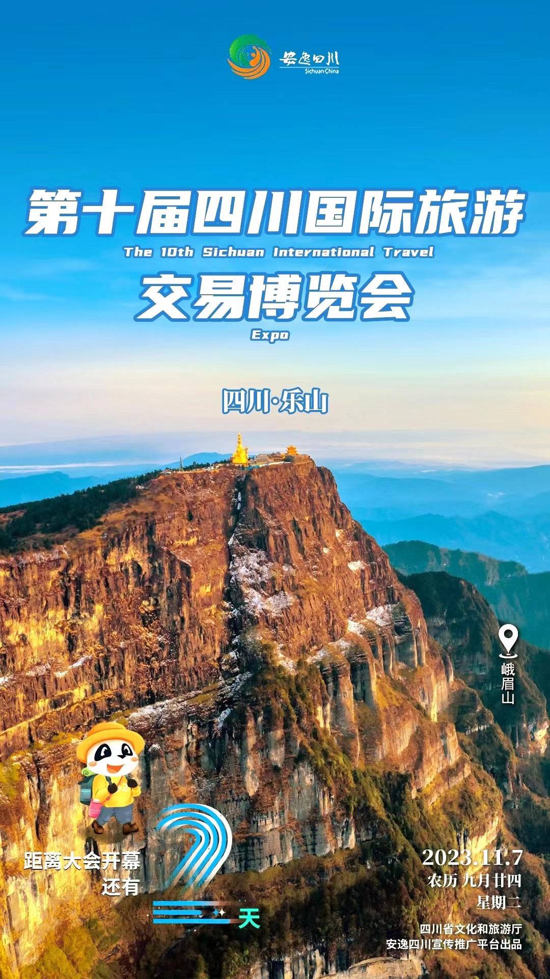 11月7日,星期二,距离第十届四川国际旅游交易博览会开幕还有2天。今日安逸四川日历海报走进乐山市峨眉山风景区,看云海翻涌,霞光万丈。