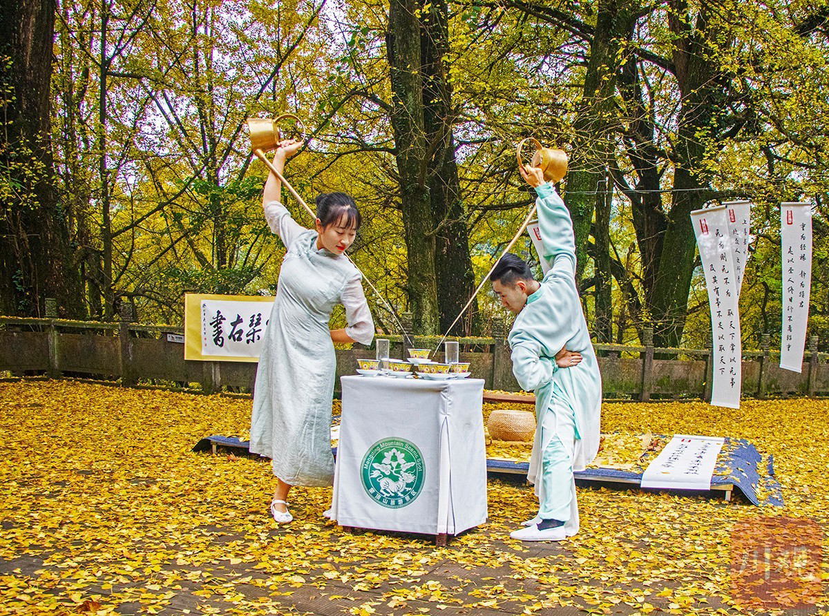 11月4日,由成都市武侯区文化馆古琴分馆、雅安市名山区文旅局等单位举办的《琴·书为伴 相约蒙顶》蜀派古琴代表性传承人黄思艺古琴专场音乐会,在名山蒙顶山上的天盖寺千年银杏树下举行。
