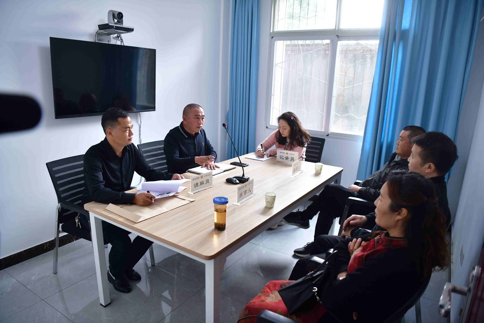 眉山市崇礼镇矛盾纠纷多元化解协调中心调解室,工作人员正在进行家事纠纷调解。