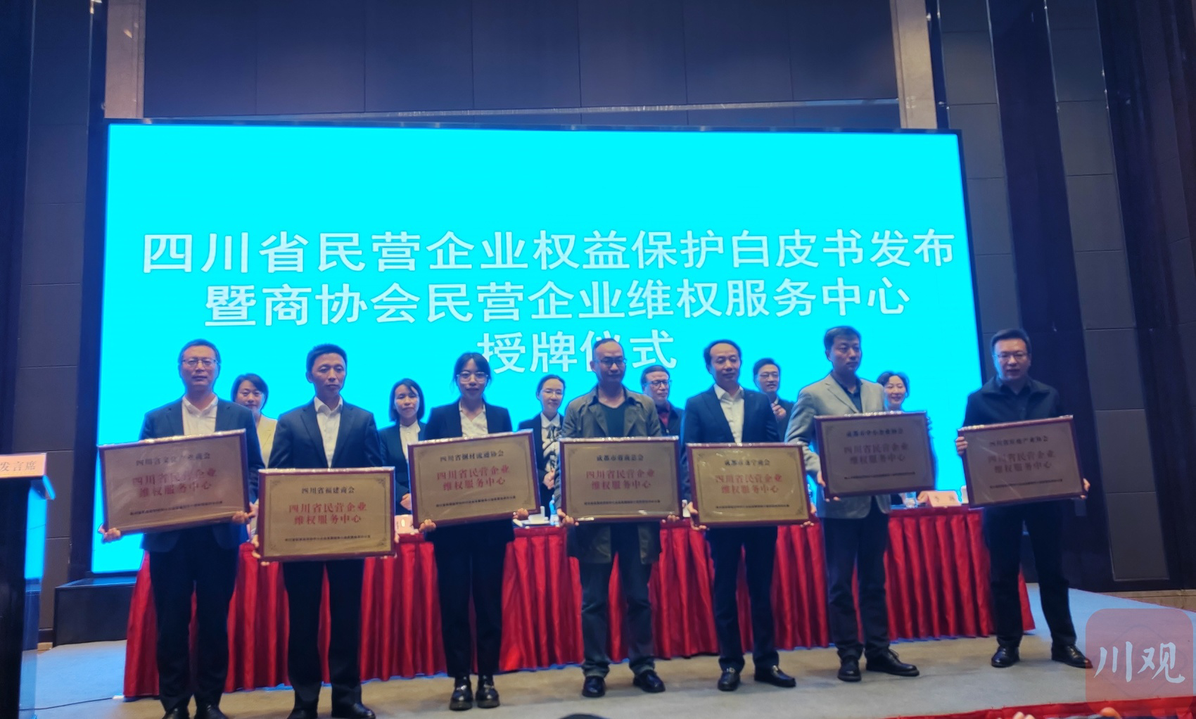 11月8日,省市场监管局(省民营办)在成都举行四川省民营企业权益保护白皮书发布暨商协会民营企业维权服务中心授牌仪式。会上,四川省川商总会、四川省浙江商会、四川省文化产业商会等18家商协会被授牌为“四川省民营企业维权服务中心”。