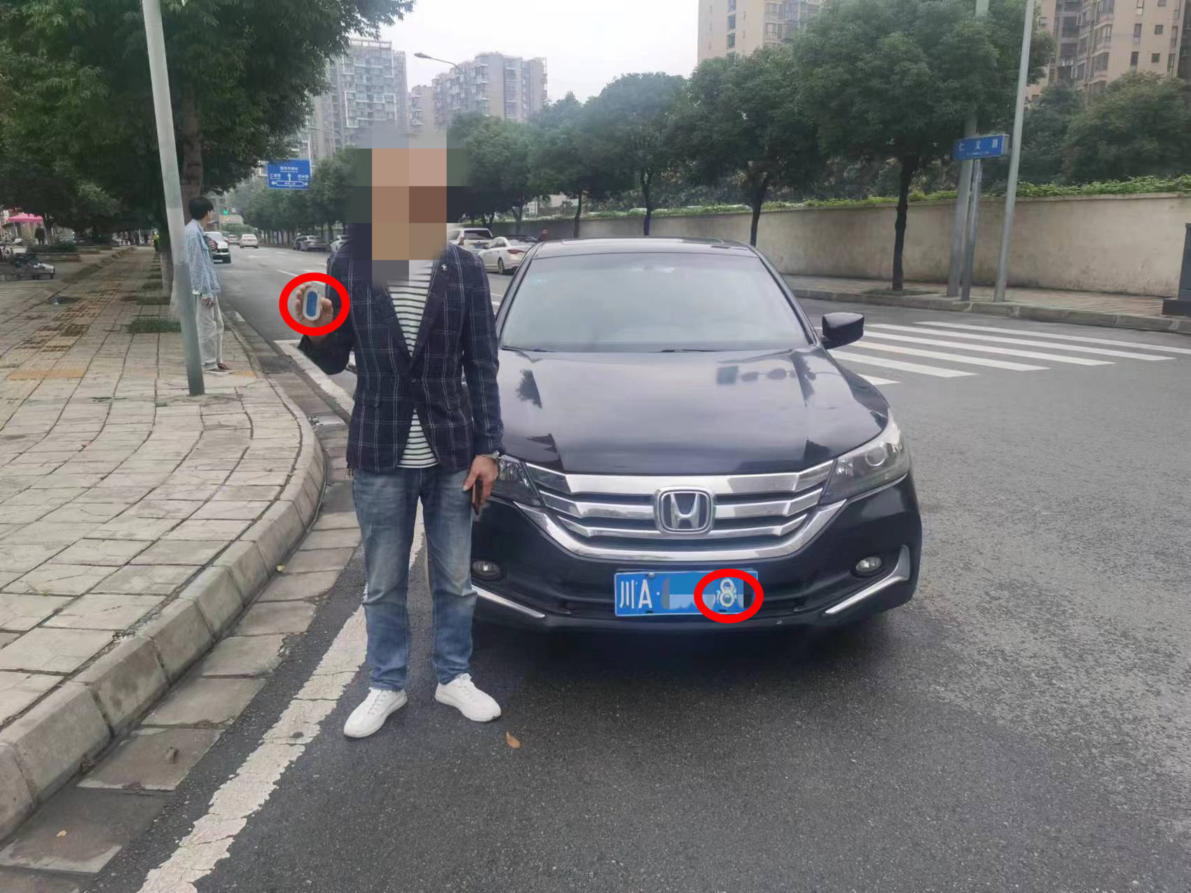 11月8日,记者从成都市交警五分局获悉,近日,该局成功挡获一辆涉嫌套牌的小型轿车。经现场检查,该车驾驶员冯某某为了躲避当天的限号,将自己购买的数字号码贴“0”粘贴在实际的数字“8”上,把车牌由川A2F*0*变为川A2F*8*来躲避电子眼抓拍,逃避处罚,没想到却被交警现场挡获。