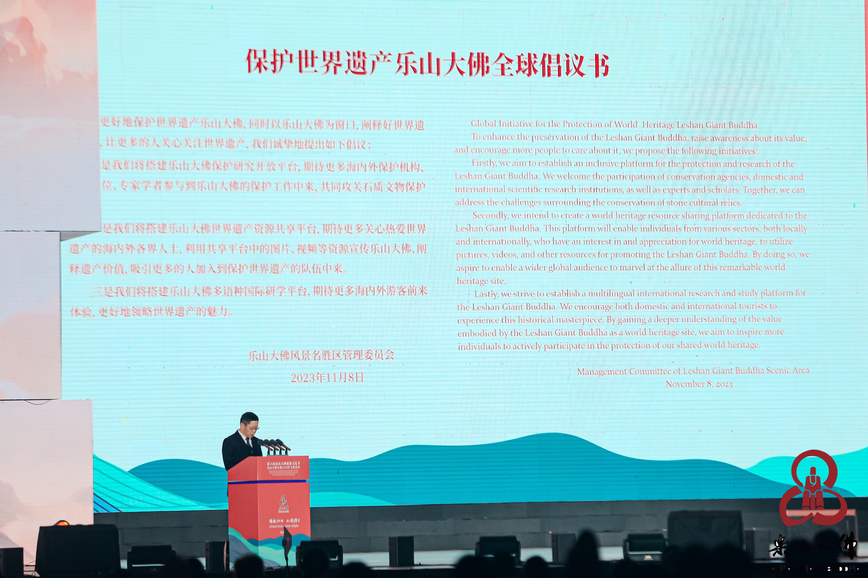 11月8日晚,第六届乐山大佛旅游文化节和乐山大佛开凿1310年文旅活动启动仪式现场,保护世界遗产乐山大佛全球倡议书正式发布,以更好地保护世界遗产乐山大佛,阐释好世界遗产价值,让更多的人关心关注世界遗产。