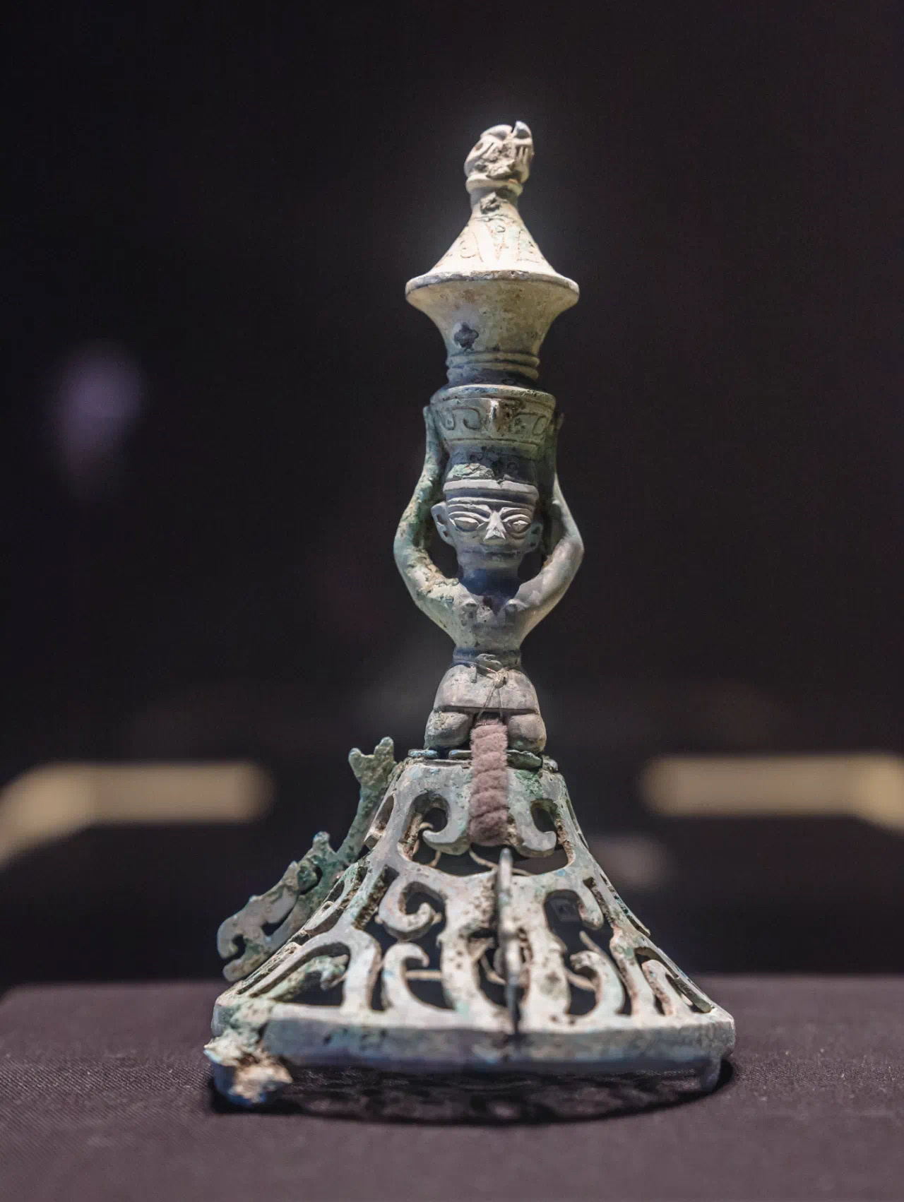 此外,这次上新的文物中还有一件“新版”青铜顶尊跪坐人像。据了解,“老版”青铜顶尊跪坐人像在新馆开放后,就没有再独自展出了,因为它找到了“家”,与其他文物垮坑拼对后,组装成为一件大型青铜神坛。而这两件新老版青铜顶尊跪坐人像,在这三千年来甚至都没有见过面,一个“生活”在二号坑,1986年出土;一个“成长”于三号坑,近几年新一轮考古被发掘出来。从这点上来说,此次展出的这件青铜顶尊跪坐人像,跟大家也是初相见。