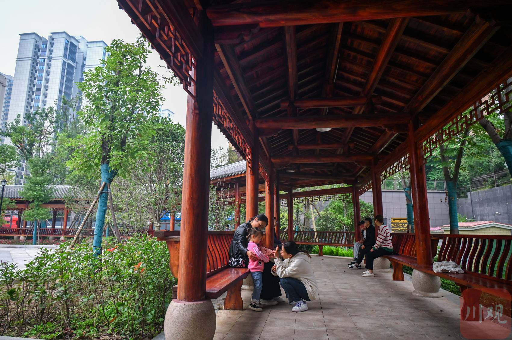 11月8日,宜宾市江安县的江景文化公园内,市民们绿树成荫的公园内休憩。位于居民住宅区内的公园里还配备健身器材、游乐设施,无论是平时闲暇还是节庆假日,吸引了不少市民游玩。这座 “推窗见绿、出门入园”的“口袋公园”见证着城市发展的美好变化。像这样的公园在县内还有10几个,这些小巧玲珑的公园,大多都位于居民区周边,为市民营造了“家门口”的高品质绿色休憩空间。