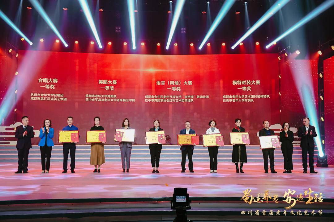 11月10日下午,2023年四川省首届老年文化艺术节文艺汇演暨颁奖典礼在成都举行,这意味着历时5个月,由四川省民政厅、四川省教育厅、四川省文化和旅游厅及四川省体育局联合举办的2023年四川省首届老年文化艺术节圆满收官。