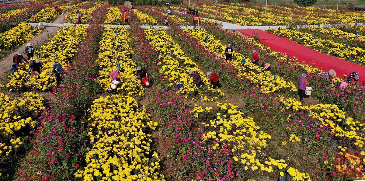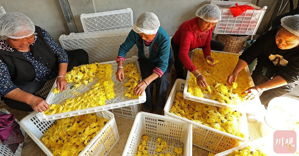 目前,中江县兴隆镇银河村种植的大片金丝皇菊进入采摘期,众多村民在田间采花、烘干,然后装箱发运。鲜花盛开不仅扮靓了乡村,也敲开了村民增收致富的大门。
