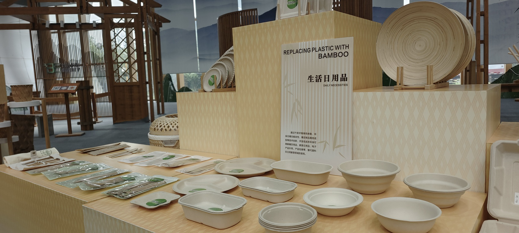 “竹纤维做的农业地膜,也可以完全实现生态降解,有效解决了传统塑料地膜污染土壤的问题。”展会现场,四川环龙新材料有限公司工作人员黄蔓淇向客商介绍,展出的地膜、餐盒等产品正是公司“以竹代塑”的探索之一。