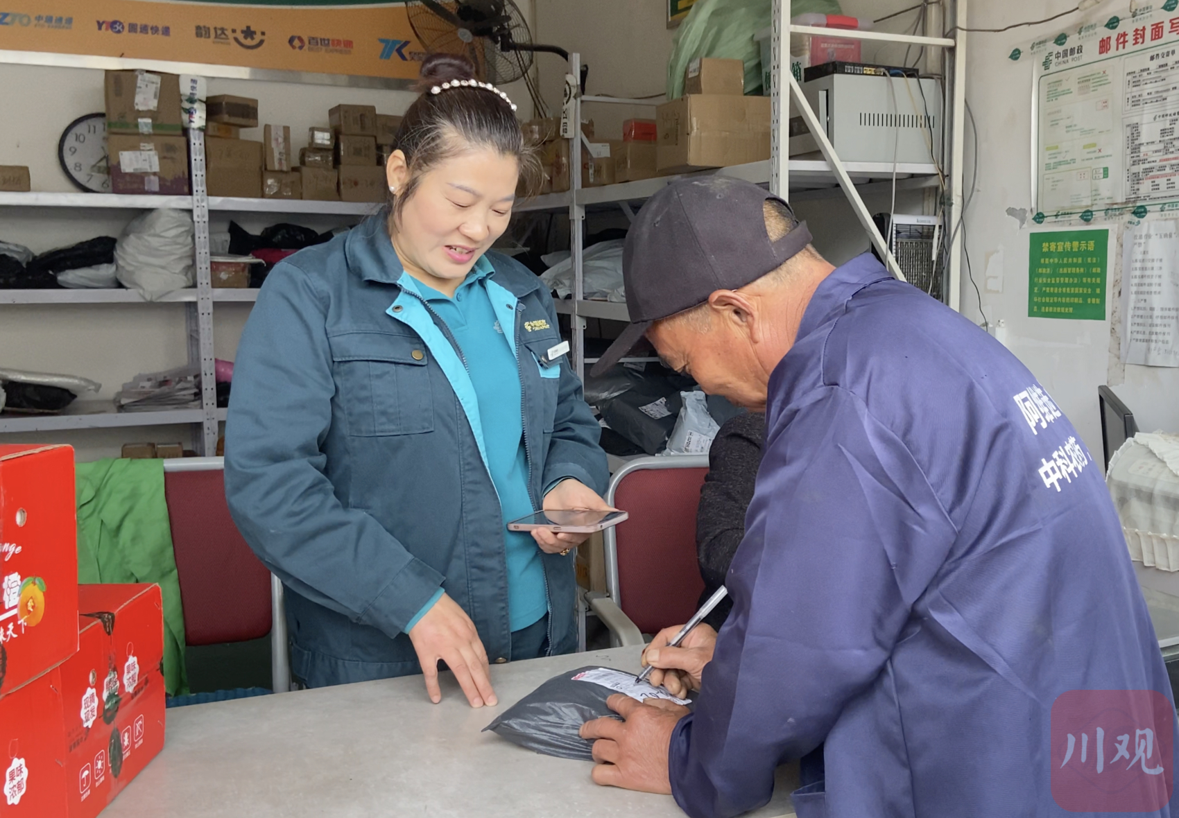 一大早,振书村村民戴女士就带着自家土鸡蛋来到金通·邮快驿站,“寄给在乐山培训的女儿吃”。据戴女士介绍,村上的邮快驿站给大家日常生活带来极大便利。“以前还要往镇上跑,现在村里就有,几乎每周都会收寄物品。”