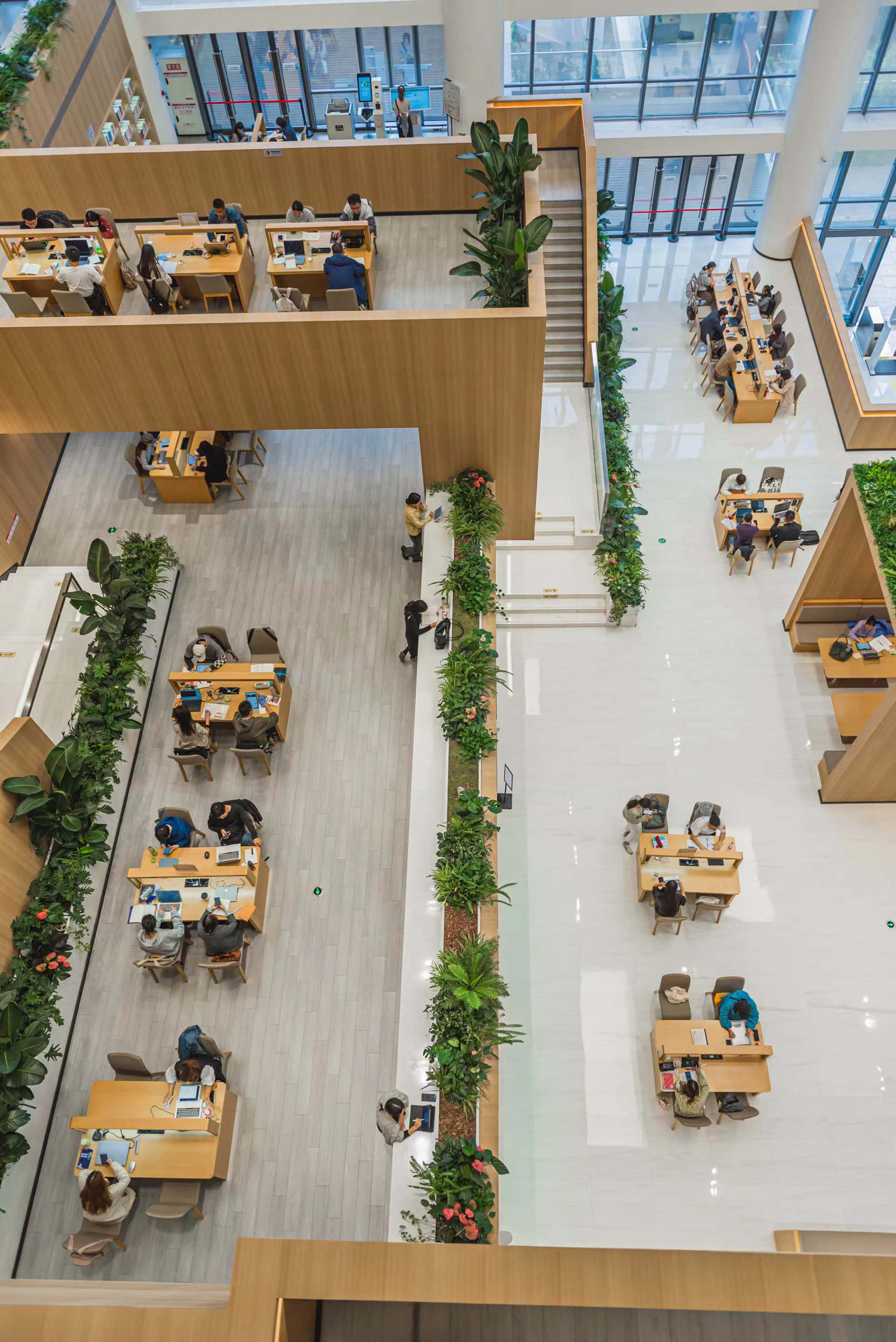 自今年6月30日,成都高新区图书馆新馆正式开馆以来,这样的场景几乎每天都在上演。1.5万平方米的面积、40余万册藏书、1200多个阅览席位,让这里成为备受附近居民和阅读爱好者青睐的“文化聚落”和“心灵港湾”。