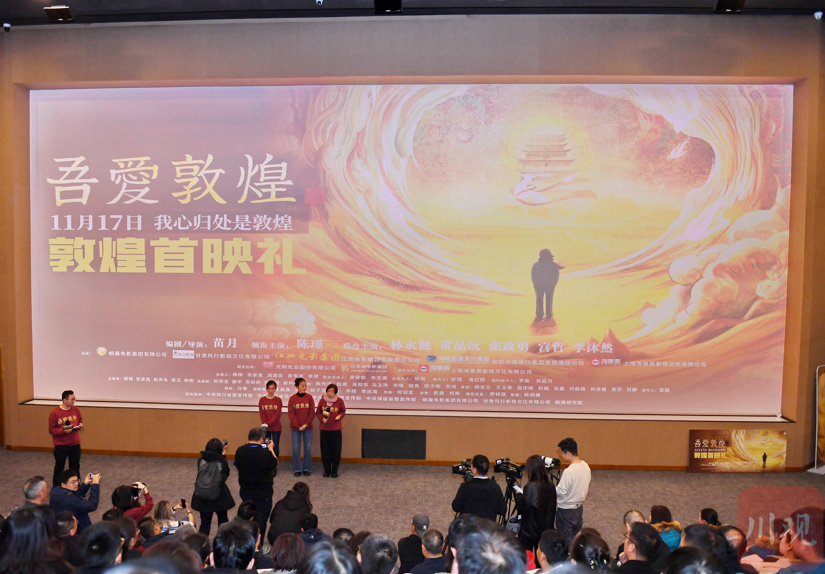 11月15日下午,电影《吾爱敦煌》敦煌首映礼在敦煌莫高窟数字展示中心举行。电影主角原型、将一辈子献给莫高窟文化艺术的传承事业,被大家亲切称为“敦煌女儿”的樊锦诗与现场观众200余人共同见证电影《吾爱敦煌》首映。