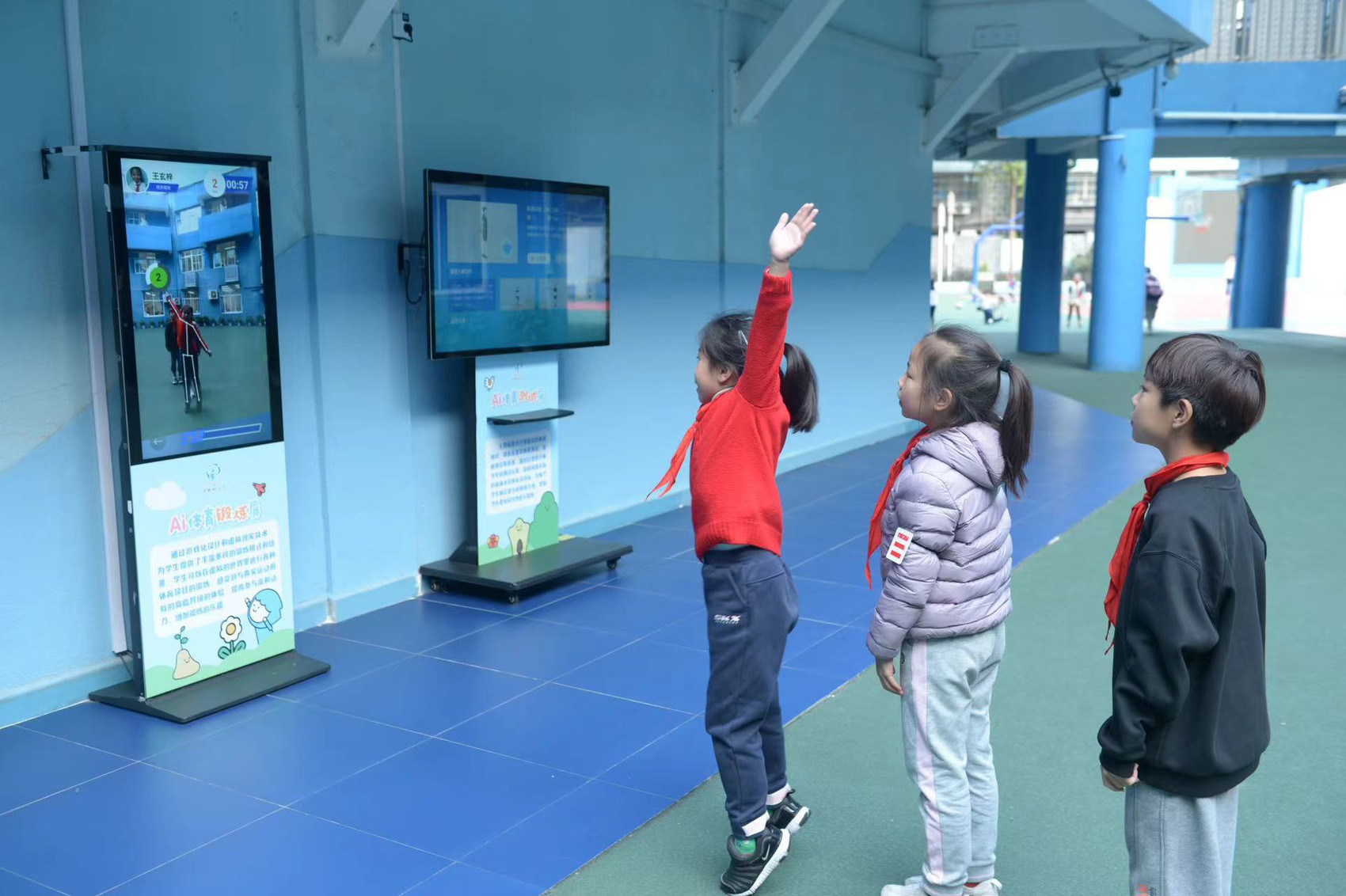 成都市泡桐树小学的学生使用学校配置的数字化设备进行个性化的体育游戏和体育测试