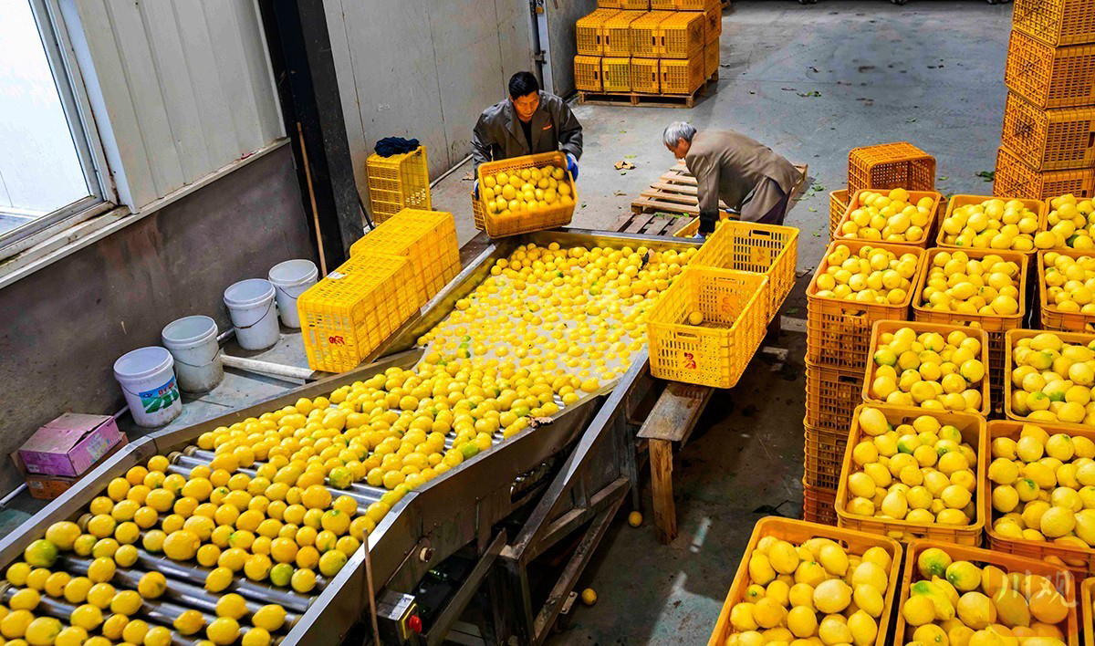 近日,岳池县供销合作社在大邑山村采用公司+农户种植的5万亩柠檬进入采摘期,首批采收的100万公斤柠檬,经过加工处理后,将销往全国各地的茶饮市场。