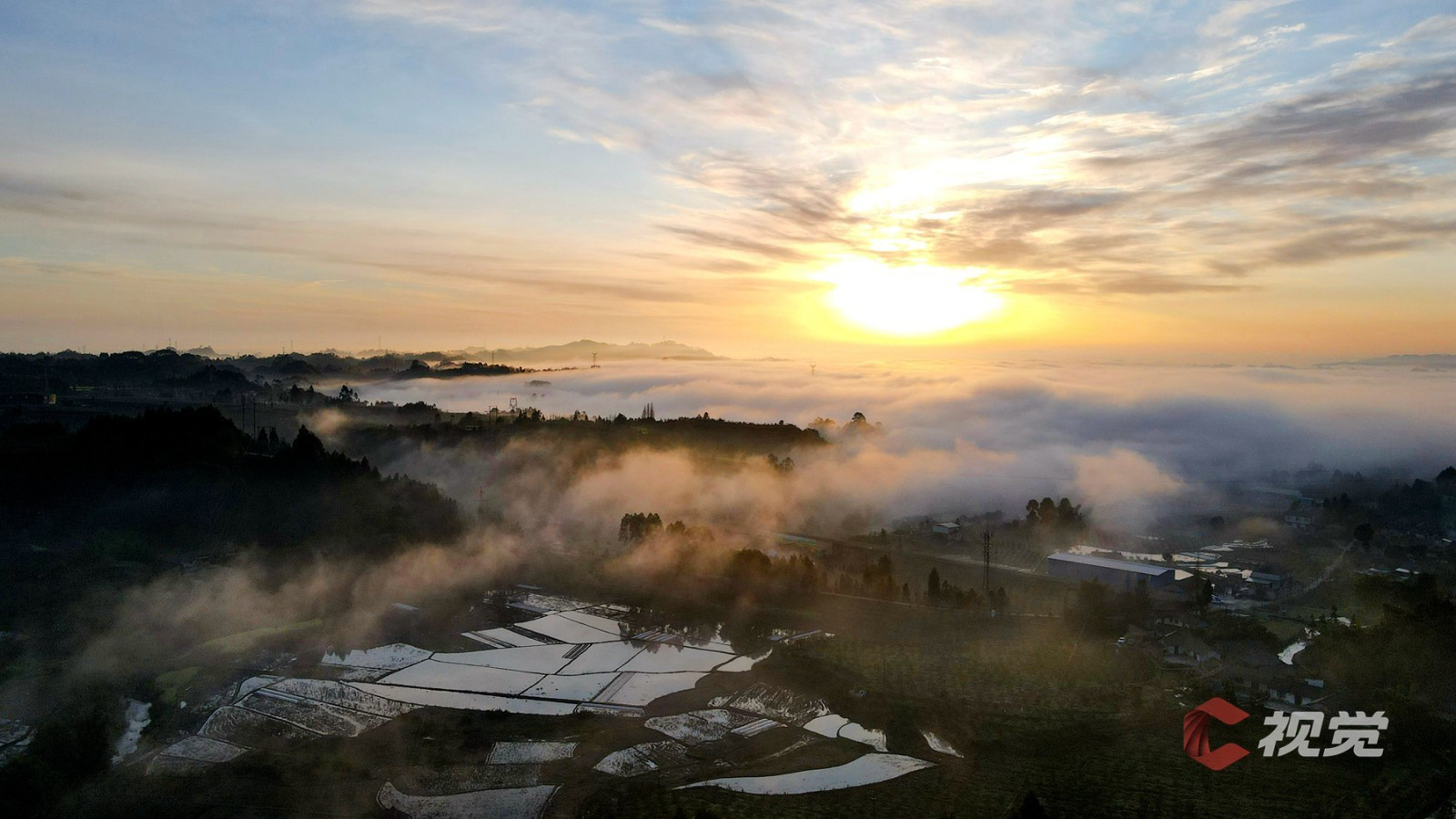 近日,在乐山沙湾天顺井村,云海蒸腾于层叠峰峦之上,如同轻柔的纱幕,袅袅弥漫在茶山与村庄之间,勾勒出一幅美轮美奂的桃源仙境图景。