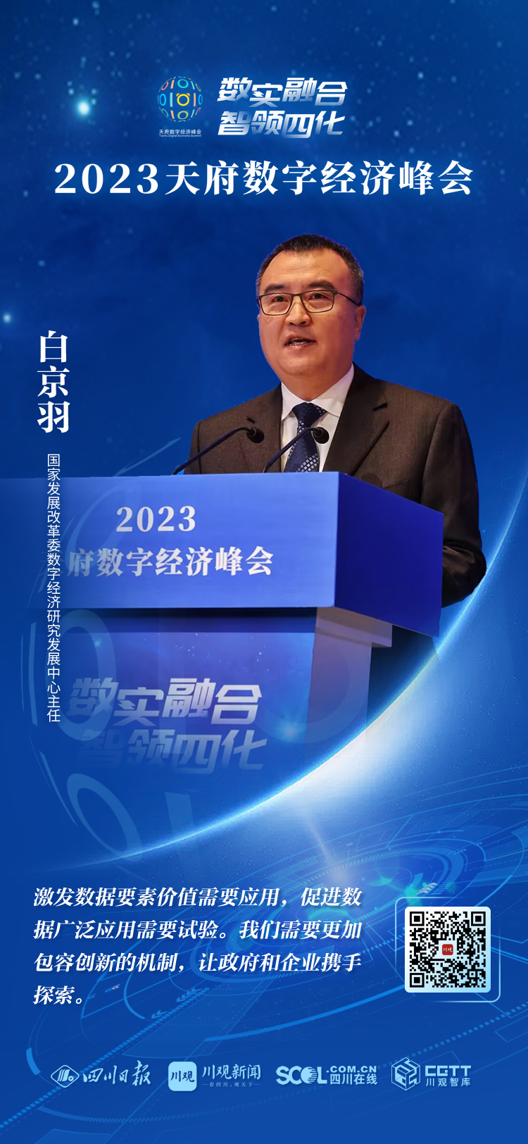 峰会开幕式暨主题活动中,国家发展改革委数字经济研究发展中心主任白京羽,之江实验室高级研究专家、俄罗斯工程院外籍院士吴信东作主旨演讲。峰会上还发布了15个四川数实融合创新实践优秀案例和天府数字经济指数,举行了四川省算力调度服务生态合作签约仪式,四川省数字经济研究中心等单位联合发布《四川省算力应用蓝皮书》。