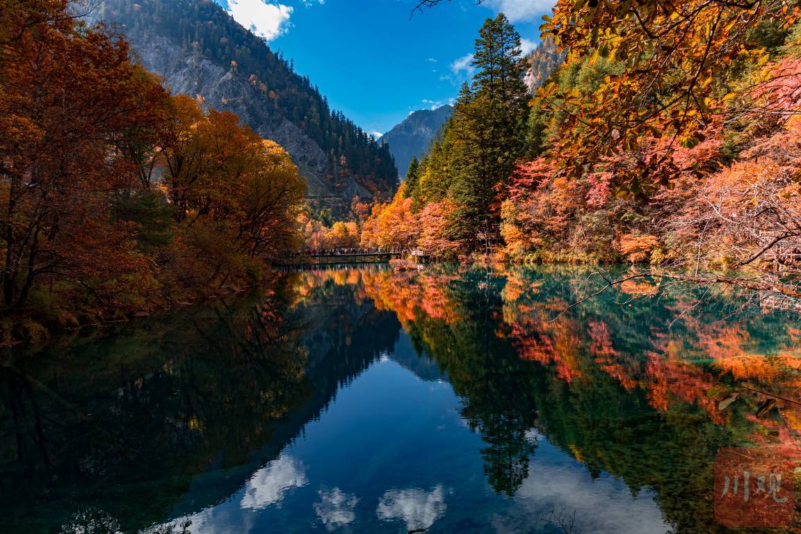 初冬别有一番情趣。清新的空气环绕其间,红、黄、绿三色相映下,层林尽染,彩林尽醉,纯净的湖面折射着五颜六色,微风掠过,一池斑斓,如梦如幻,使人完全置身于童话般世界一般,不愧是神奇的九寨 人间的天堂!