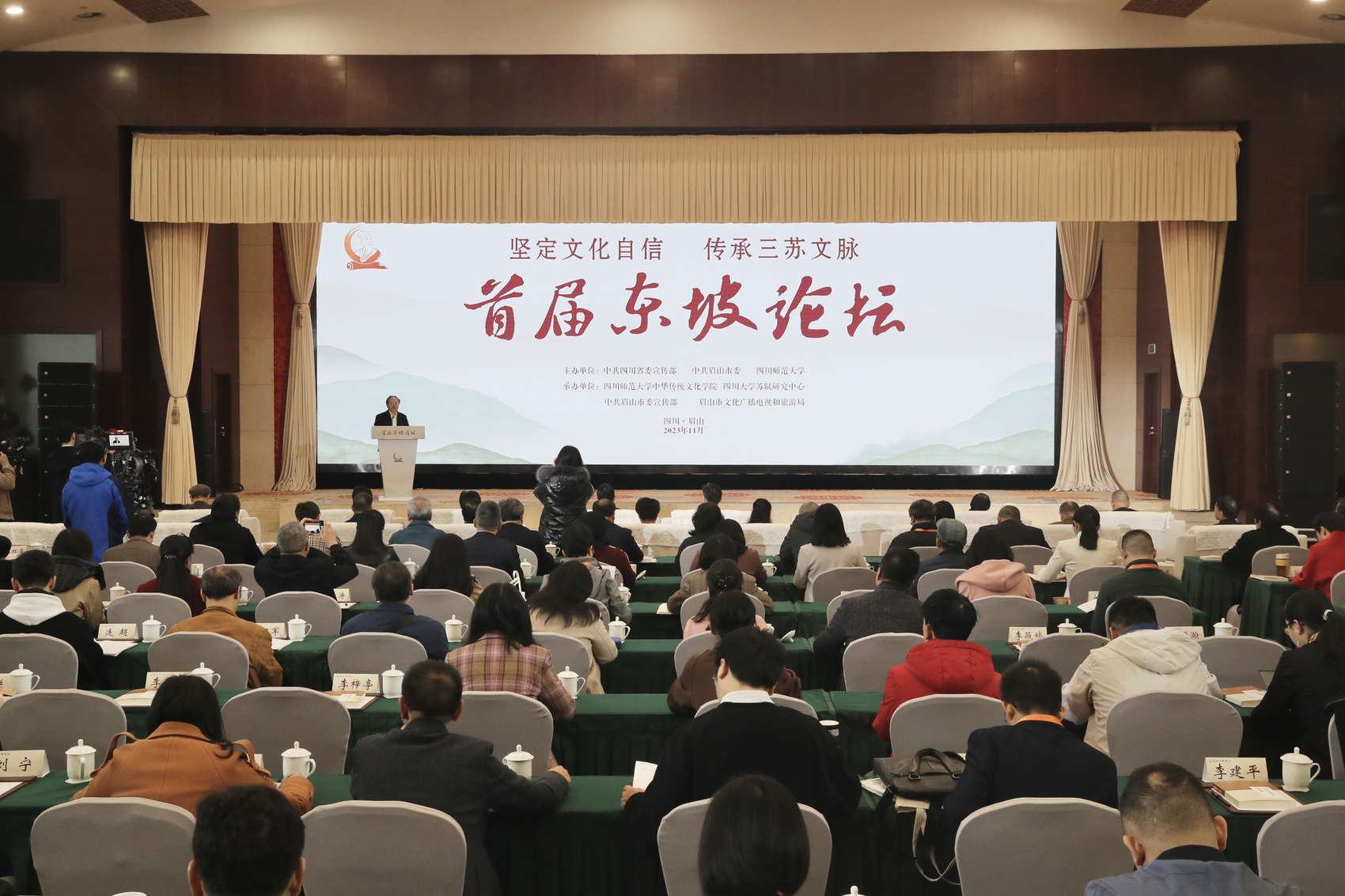 11月17日,由省委宣传部、眉山市委、四川师范大学主办的首届东坡论坛在眉山举行。本届论坛主题为“坚定文化自信 传承‘三苏’文脉”,旨在深入研究挖掘“三苏”的历史价值和时代价值,生动讲述展示“三苏”文化的传承故事和时代故事,更好担负起新时代新的文化使命,推动中华优秀传统文化创造性转化、创新性发展。
