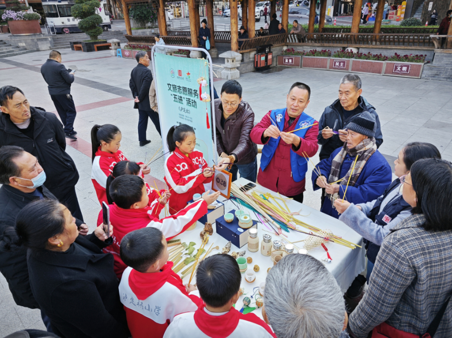 11月19日,文旅志愿服务“五进”活动在甘孜州泸定县泸定桥广场、滨河广场同时举行。此次活动以景区为载体,结合沉浸式演出、非遗项目互动体验,开展面向民族地区的重点文化和旅游志愿服务。