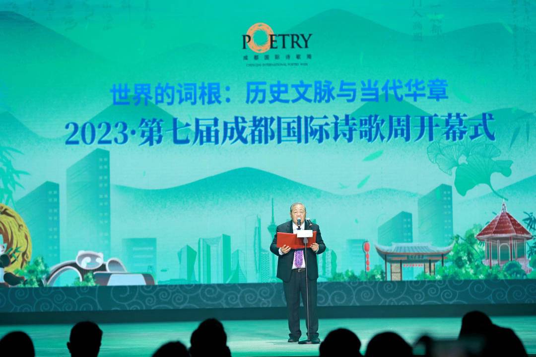 11月21日晚,“世界的词根:历史文脉与当代华章”2023·第七届成都国际诗歌周开幕式举行,来自多个国家的中外诗人再聚蓉城,共襄诗歌盛宴。