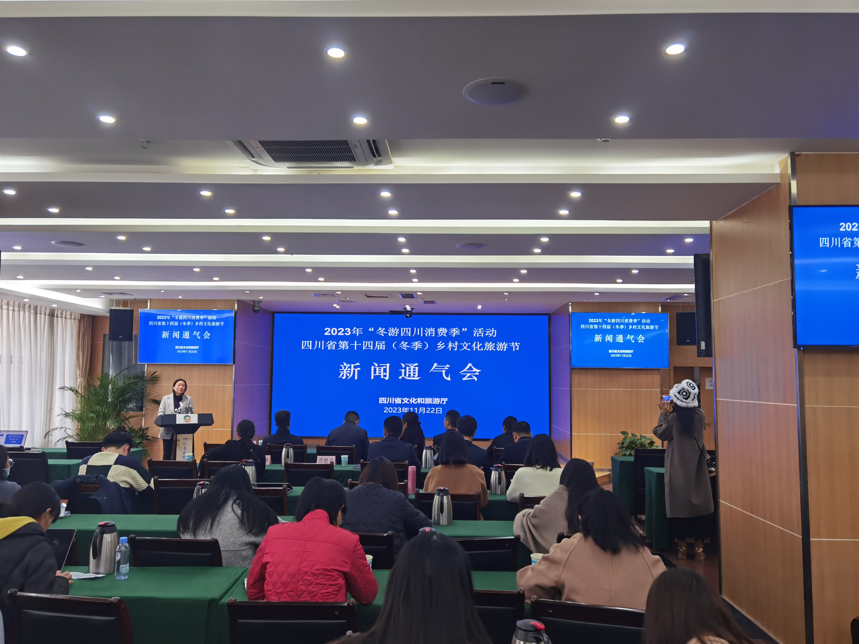 11月22日,2023年“冬游四川消费季”活动新闻通气会在四川省文化和旅游厅举行。会上公布,2023四川省冬季旅游启动仪式、四川省第十四届(冬季)乡村文化旅游节开幕式将于11月28日在绵阳市安州区同期举行。