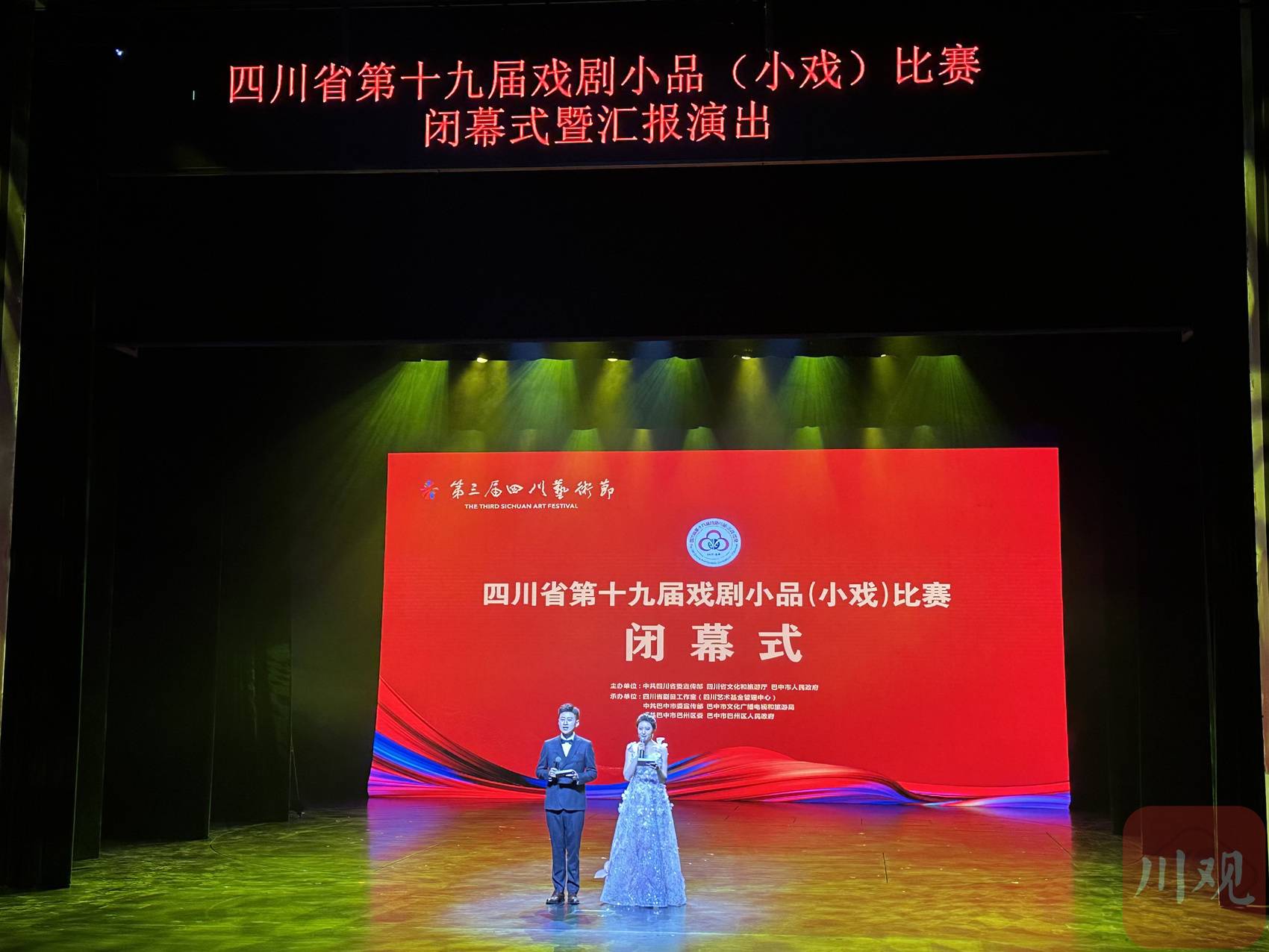 11月22日晚,由四川省委宣传部、四川省文化和旅游厅、巴中市人民政府主办,四川省剧目工作室(四川艺术基金管理中心)、巴中市委宣传部、巴中市文化广播电视和旅游局等承办的四川省第十九届戏剧小品(小戏)比赛闭幕式暨汇报演出在四川省文化艺术中心戏剧厅举行,来自巴中、达州、四川省曲艺研究院等演出单位的9部优秀作品进行汇报演出,为观众奉上了一场精彩的艺术表演和视觉盛宴。