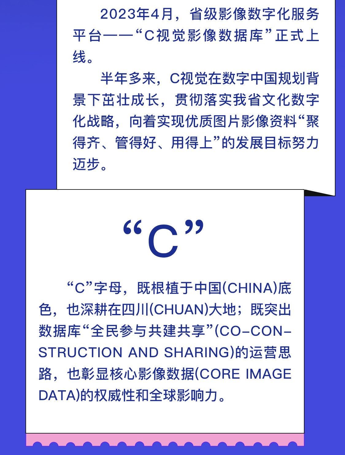 2023年4月23日,由省委宣传部指导、四川日报报业集团建设运营的省级影像数字化服务平台——C视觉影像数据库正式上线。