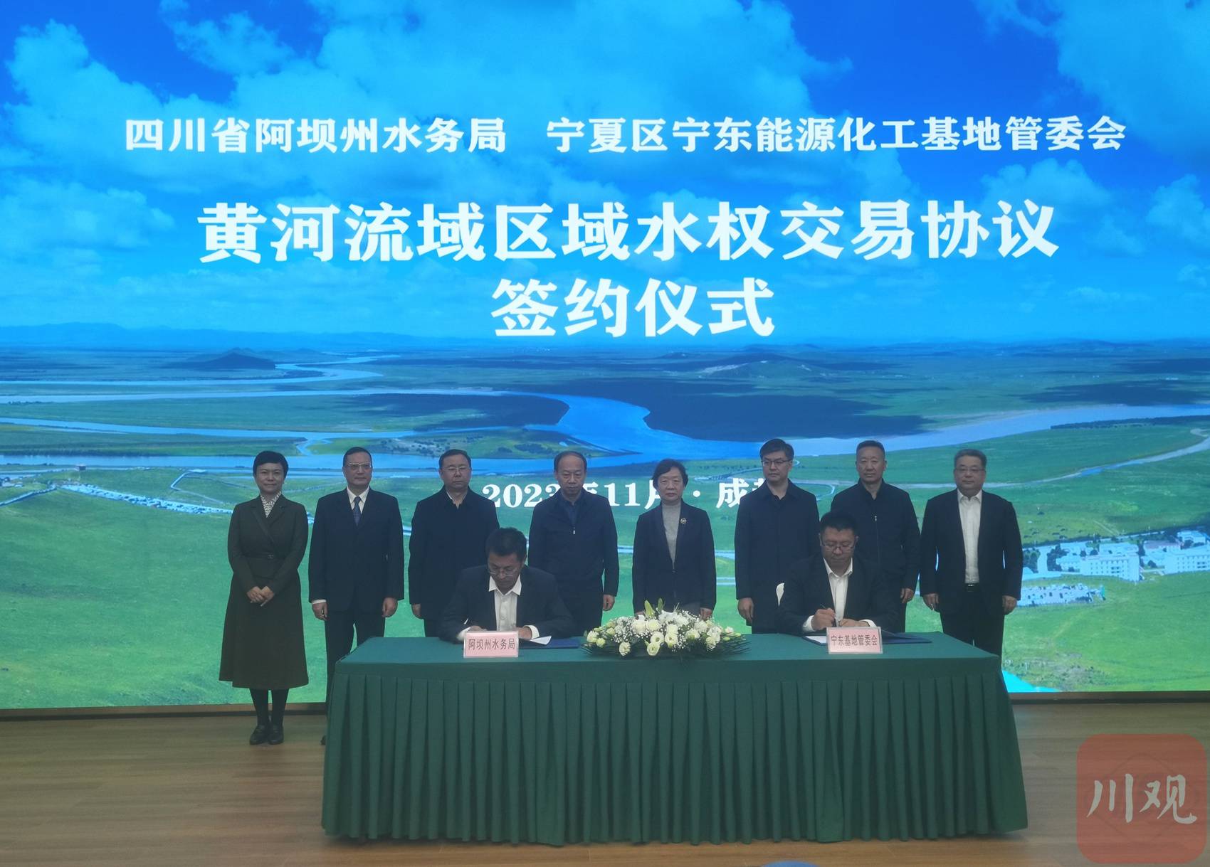 就在刚才,宁夏回族自治区宁东能源化工基地管理委员会(简称“宁东基地”)在成都以1800万元的价格,购得四川阿坝州出让的2024-2026年共计1500万立方米黄河用水权,并在中国水权交易所交易成功,成为全国首单跨省区域水权交易。