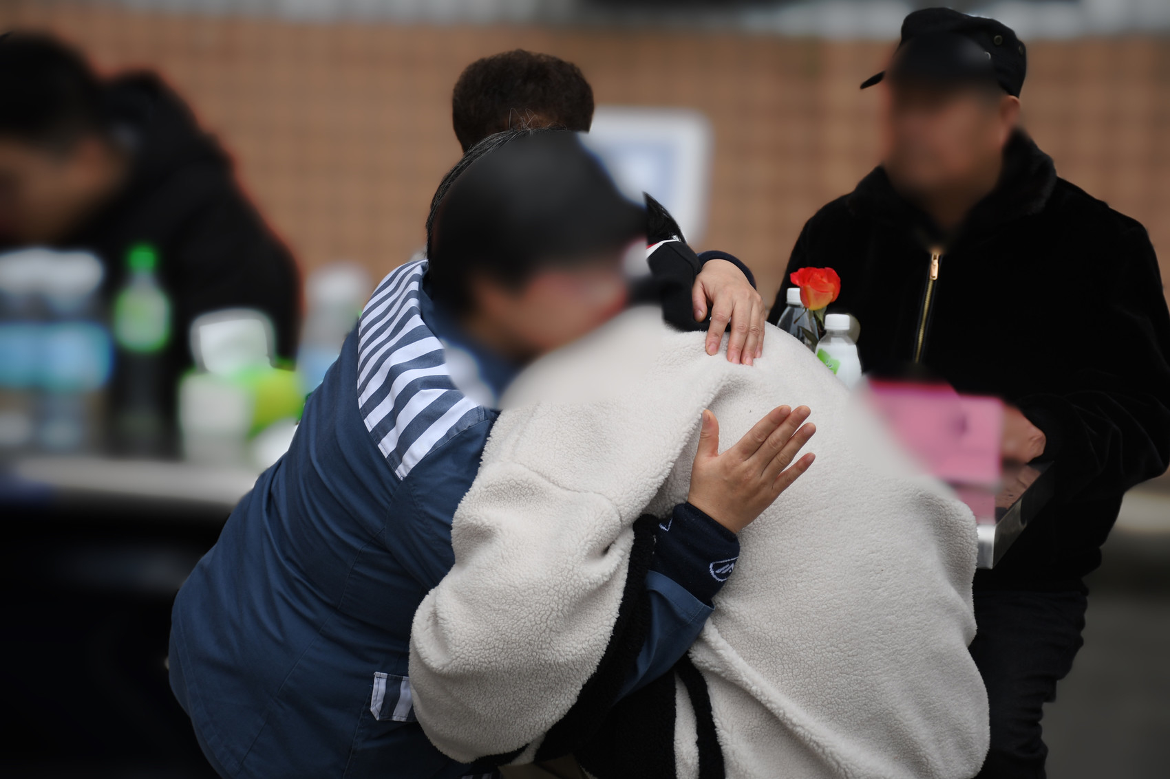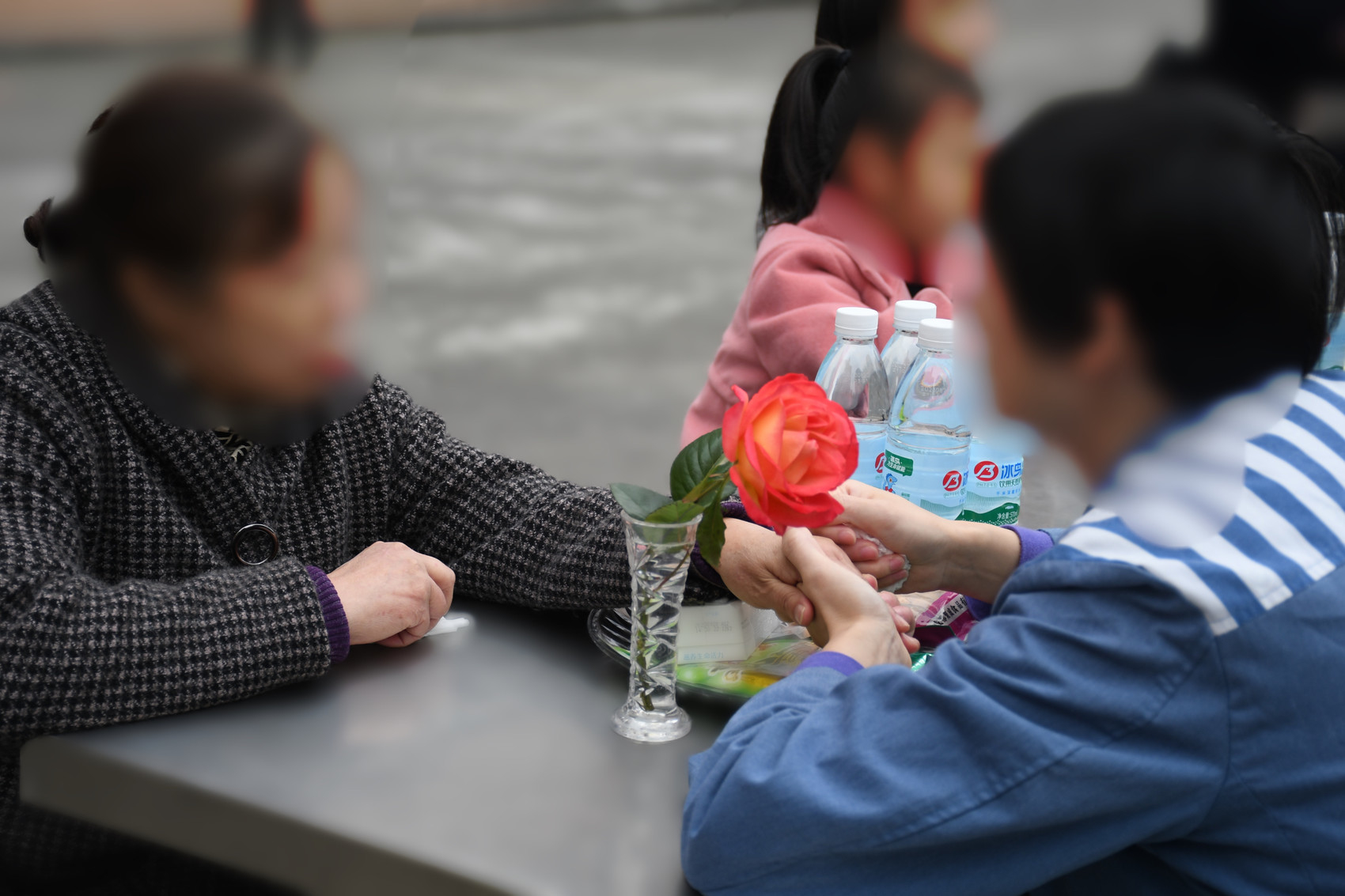 一面是家属对亲人的挂念,一面是民警们的精心准备:监舍外的操场坝里,桌椅整齐排列,桌面上摆放着一束花和一些饮料、零食。