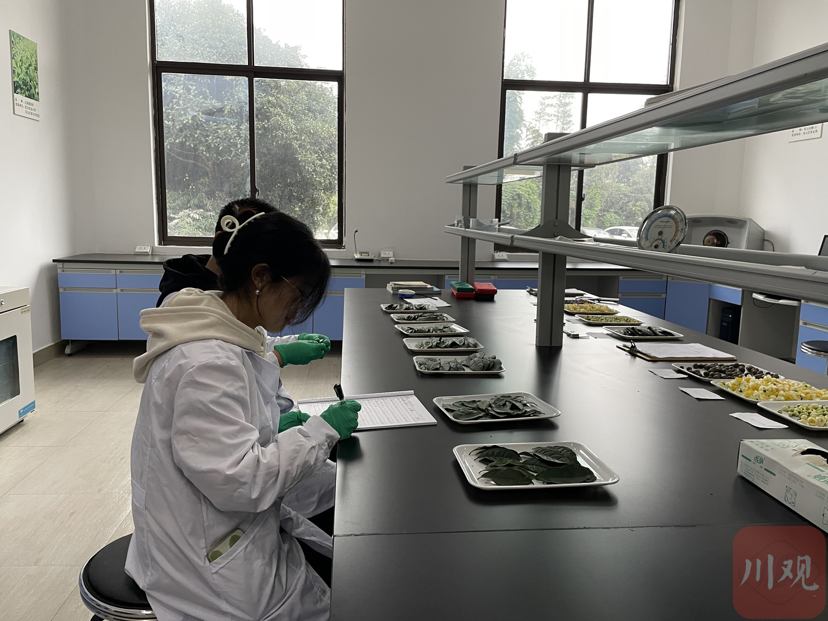 量叶片、作记录,就读于四川农业大学研一的李碧林正在雅安市名山区中峰镇海棠村牛碾坪茶园观测茶树新品系花、叶及果实的特性,这是她研究生生活的常态。“差不多一个月有一周时间都在这里跟着导师学习。”