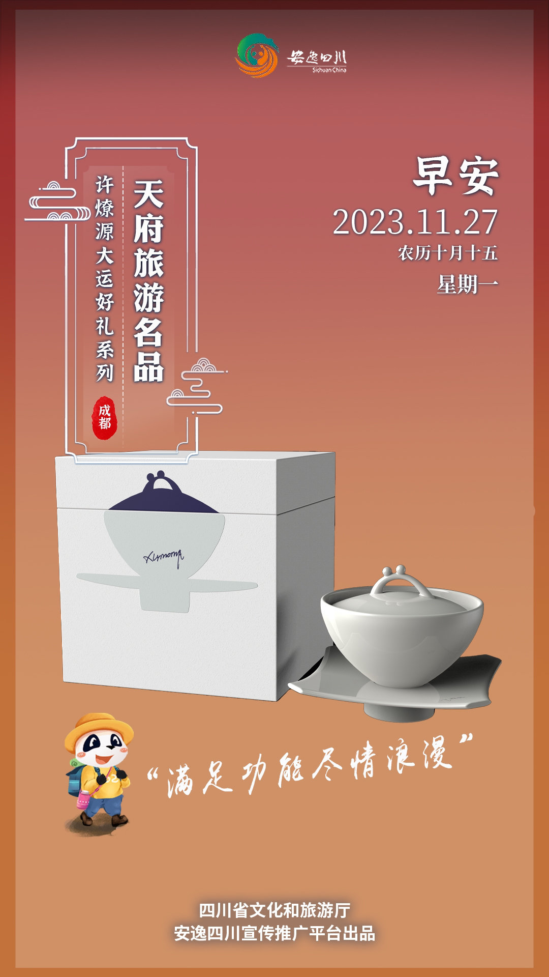 11月27日,星期一。今日安逸四川日历海报“天府旅游名品”之旅走进许燎源大运好礼系列。