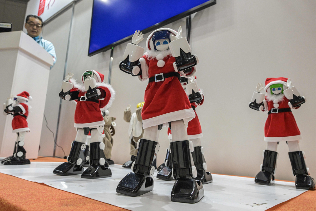 11月29日,在日本东京国际机器人展上,机器人进行舞蹈展示。