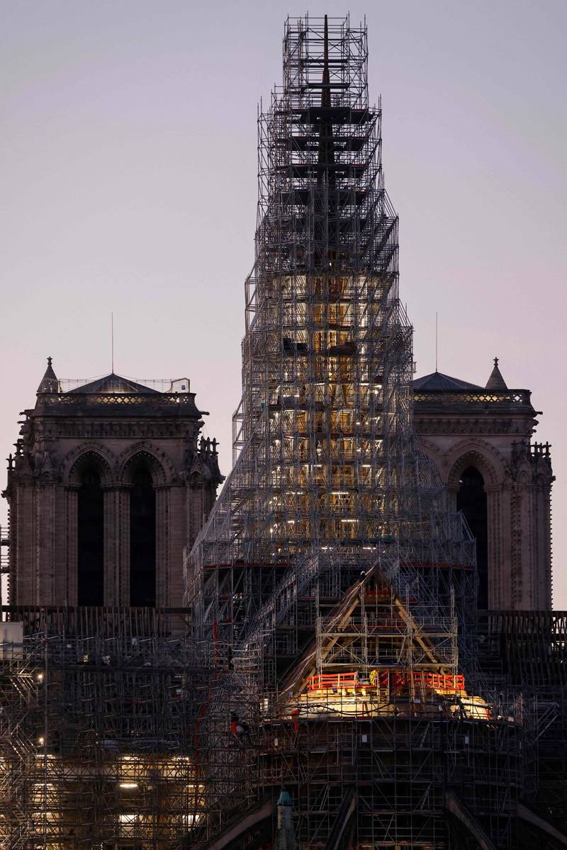这是11月28日在法国巴黎拍摄的重建中的巴黎圣母院。